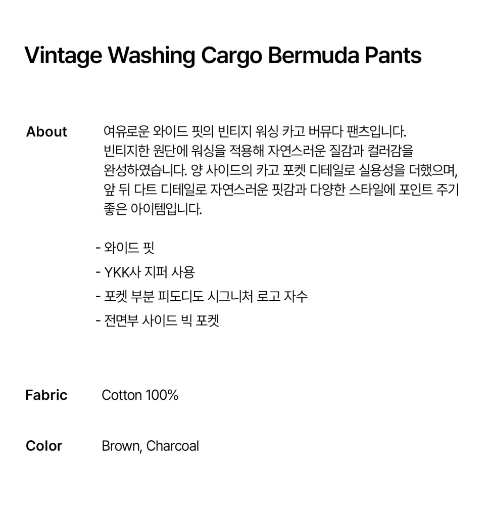 Vintage Washing Cargo Bermuda Pants Charcoal