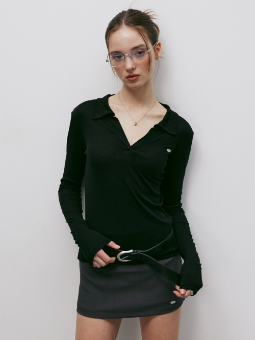 26 스포티 자수 트레이닝 롱스커트 블랙