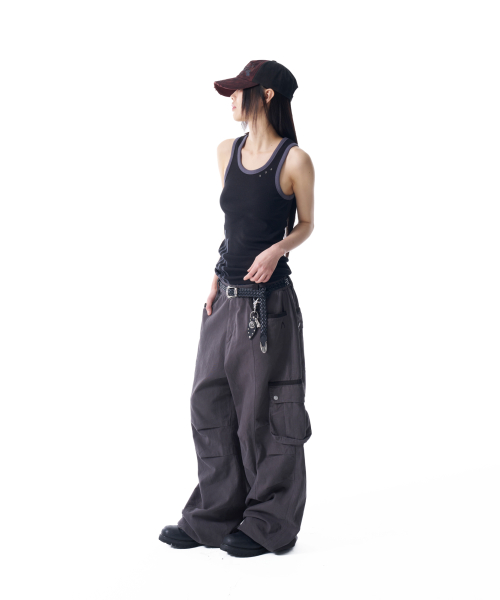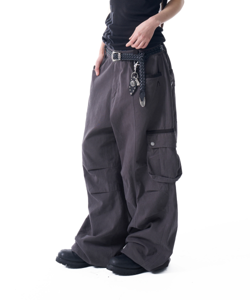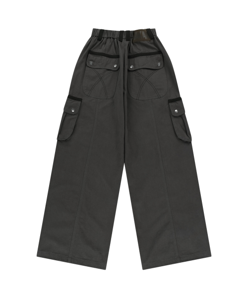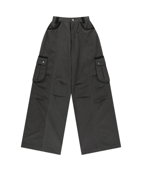 Knee Pin-tuck Contrast Cargo Pants (Dark Gray)