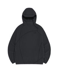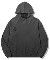 와플 커버 스티치 후드 티셔츠 - CHARCOAL