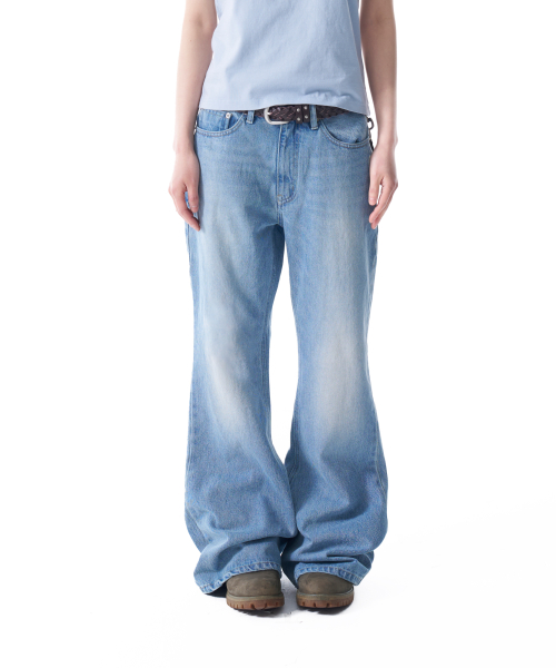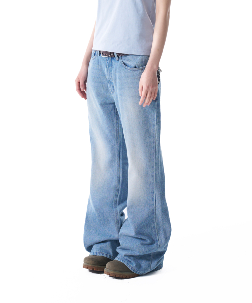 가먼트워싱 세미와이드 데님팬츠-차콜