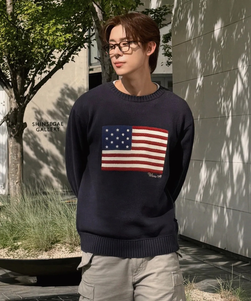 American Flag Intarsia Pullover / WHKAG1292U