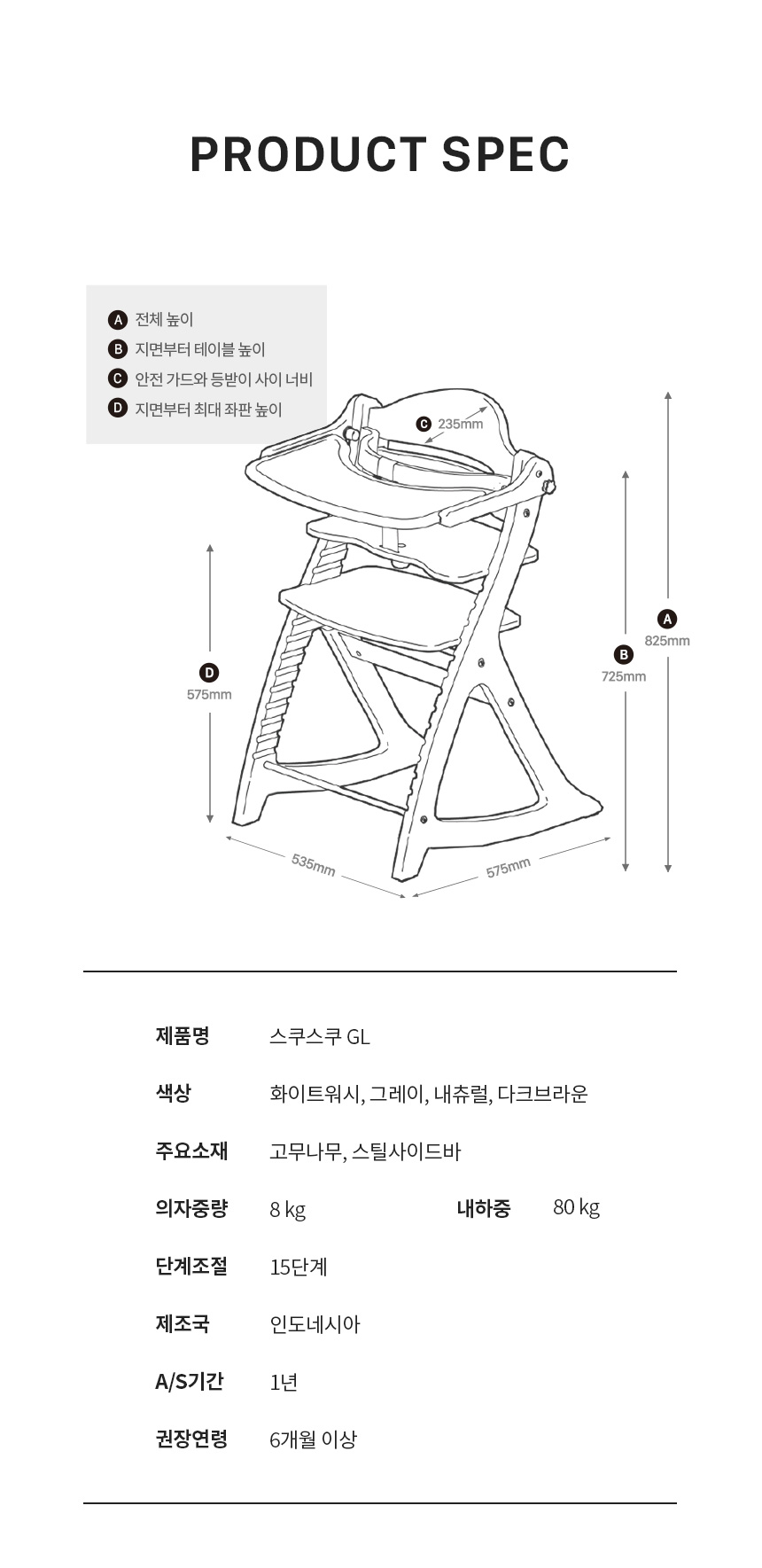 스쿠스쿠GL 원목 하이체어_컬러선택