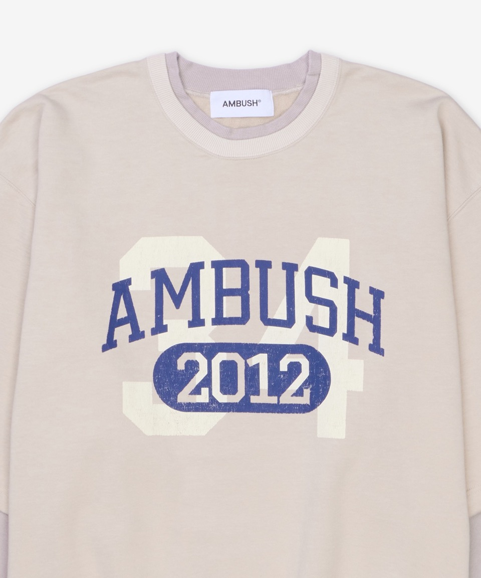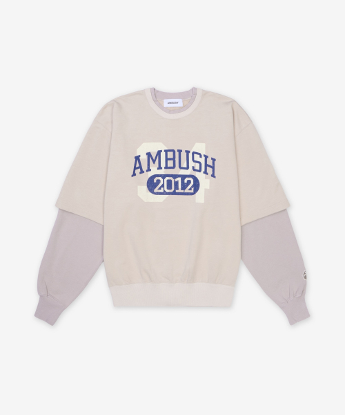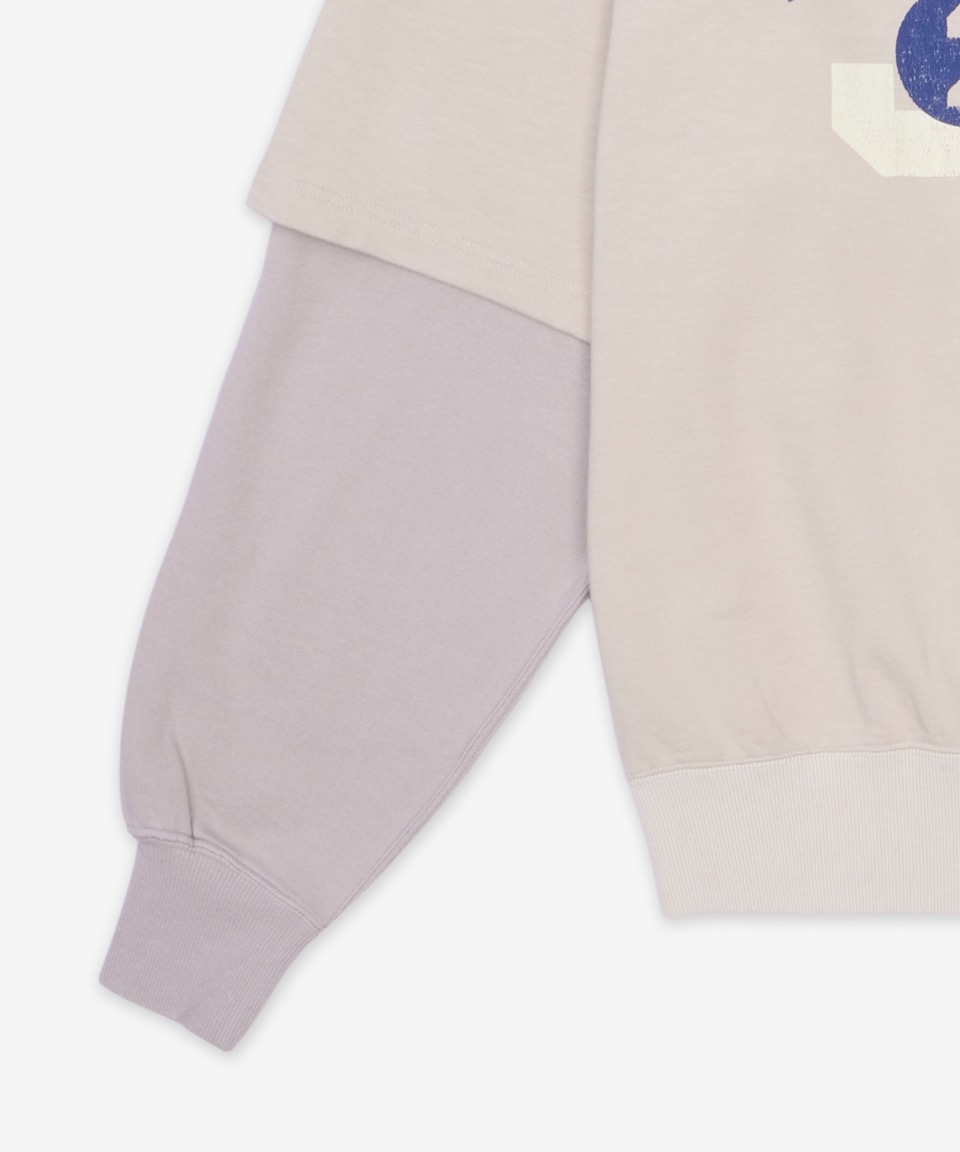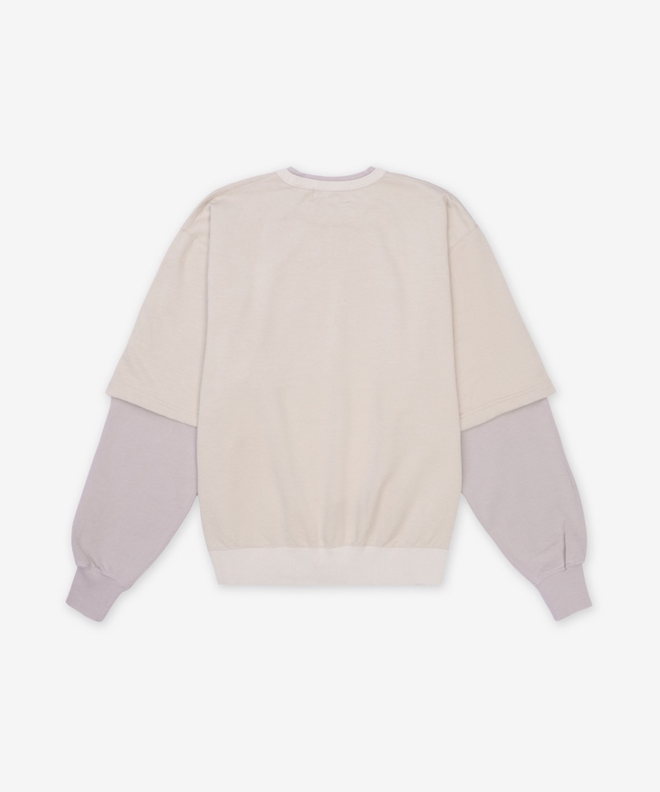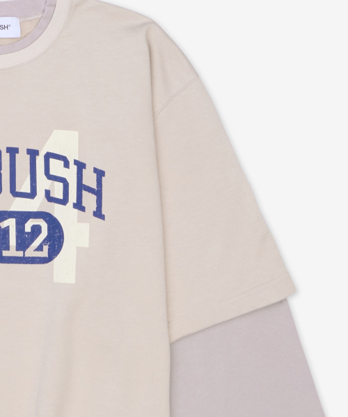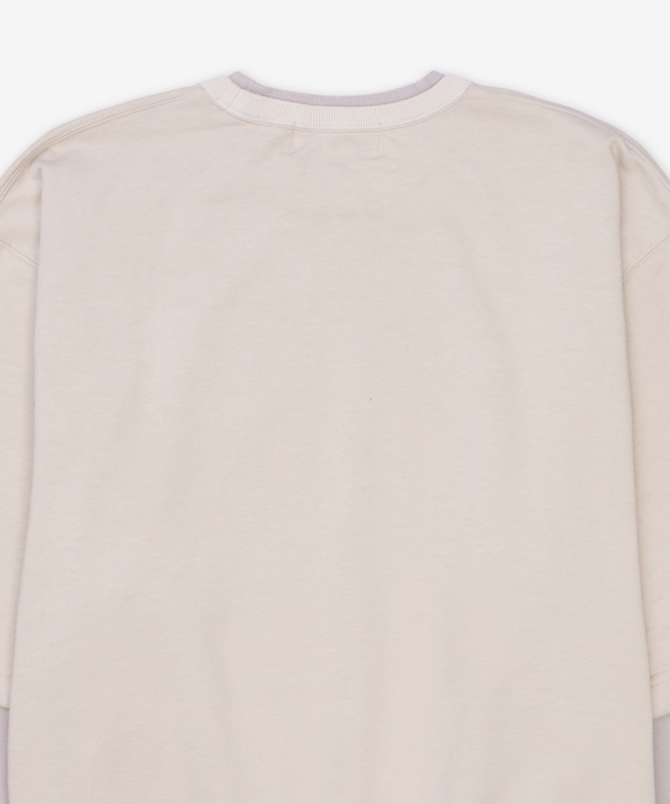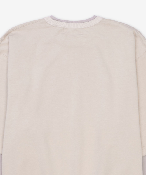 레이어드 크루넥 오버핏 티셔츠 - 베이지 / 1211533132