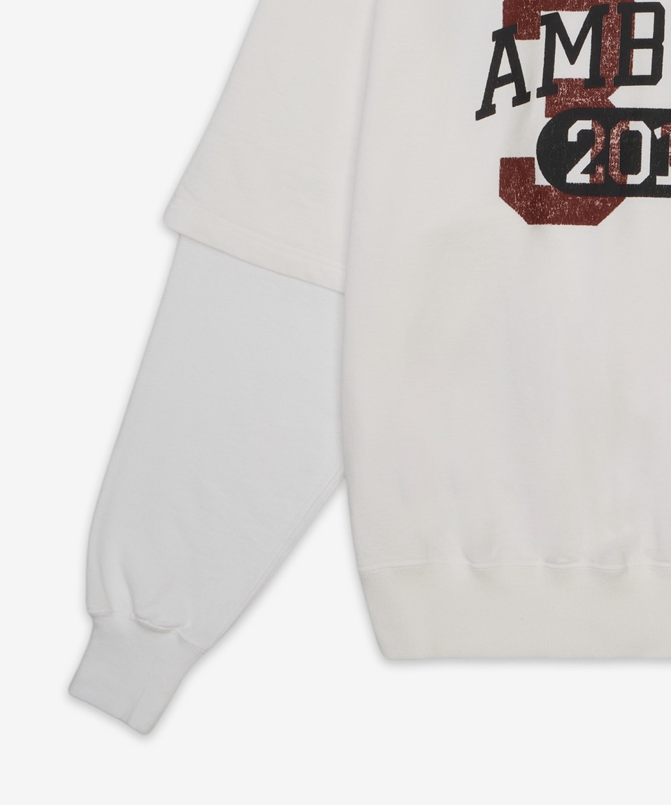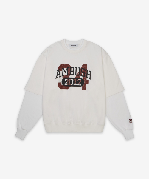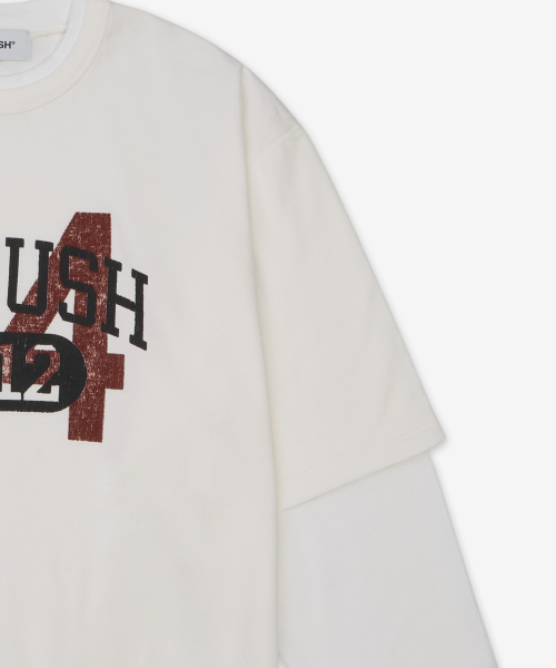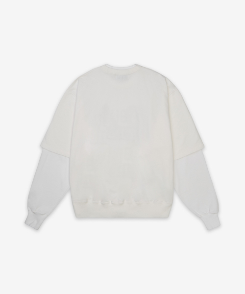 레이어드 크루넥 오버핏 티셔츠 - 화이트 / 1211533110