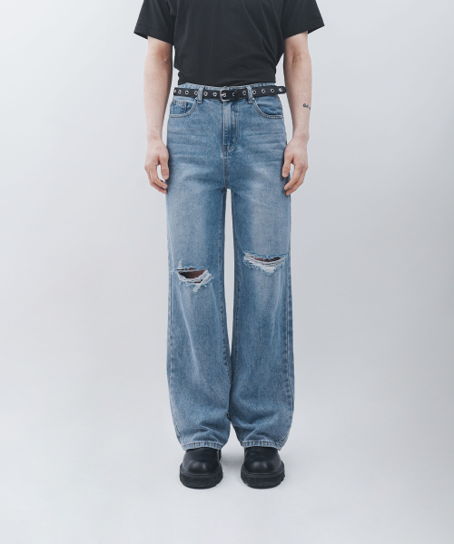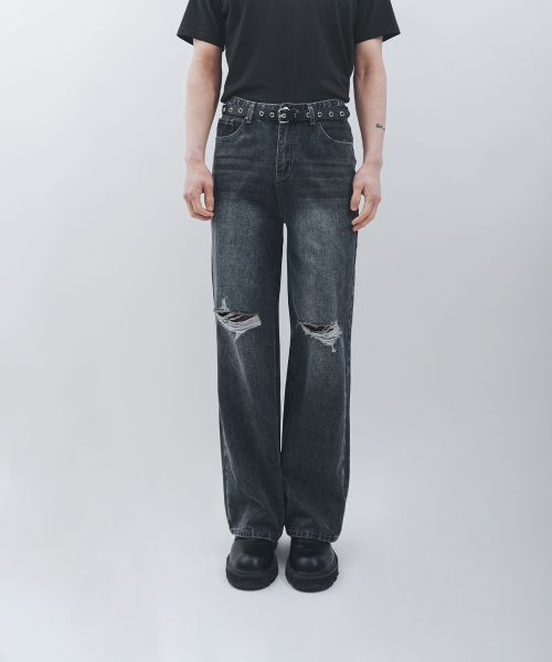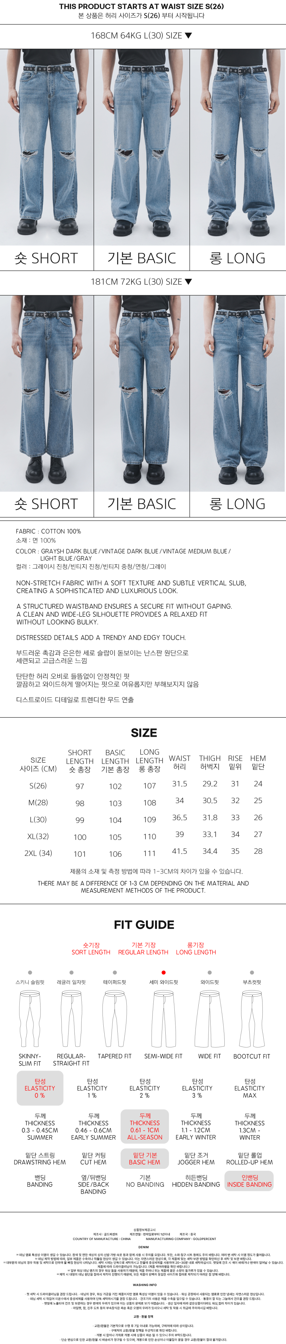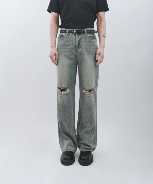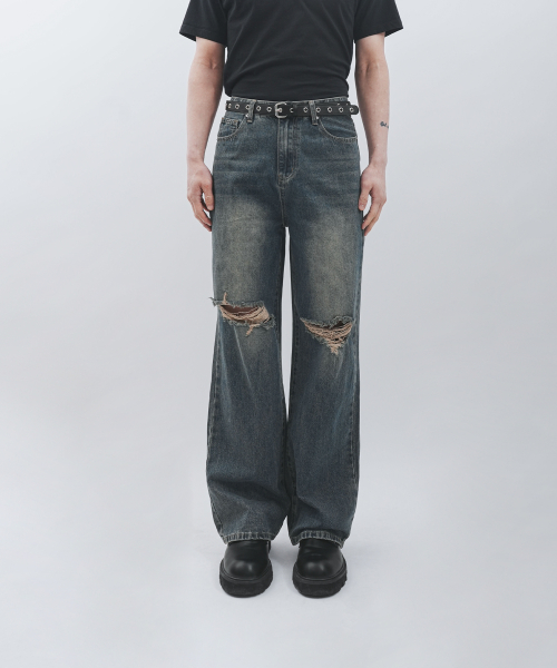 타임리스 세미 와이드핏 데미지 포인트 데님(5COLOR, M)