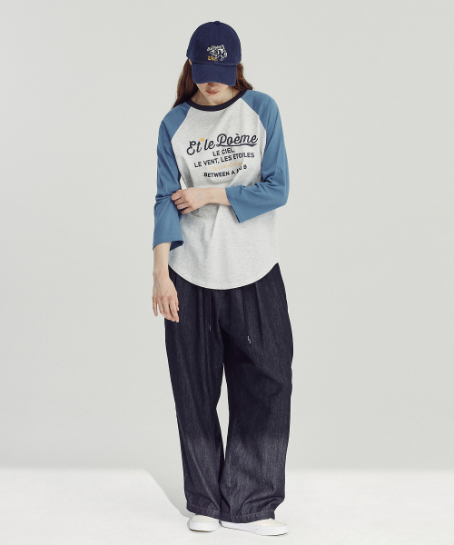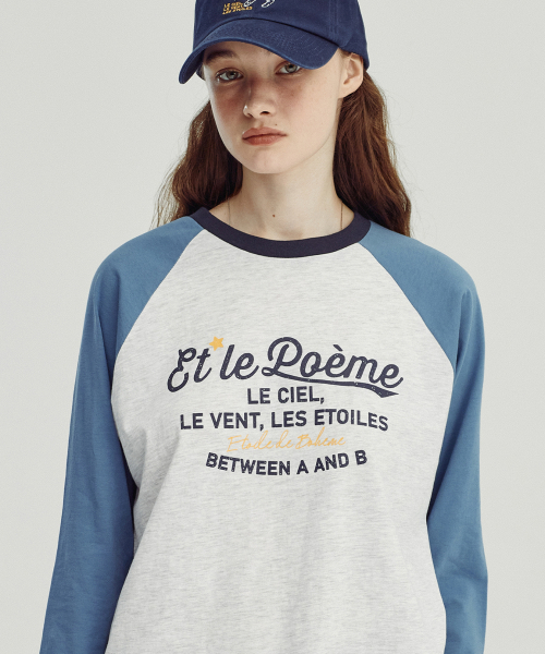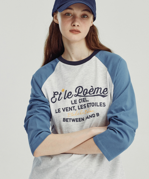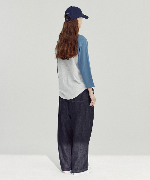 빈티지 크랙 레글런 소매 티셔츠 [블루]