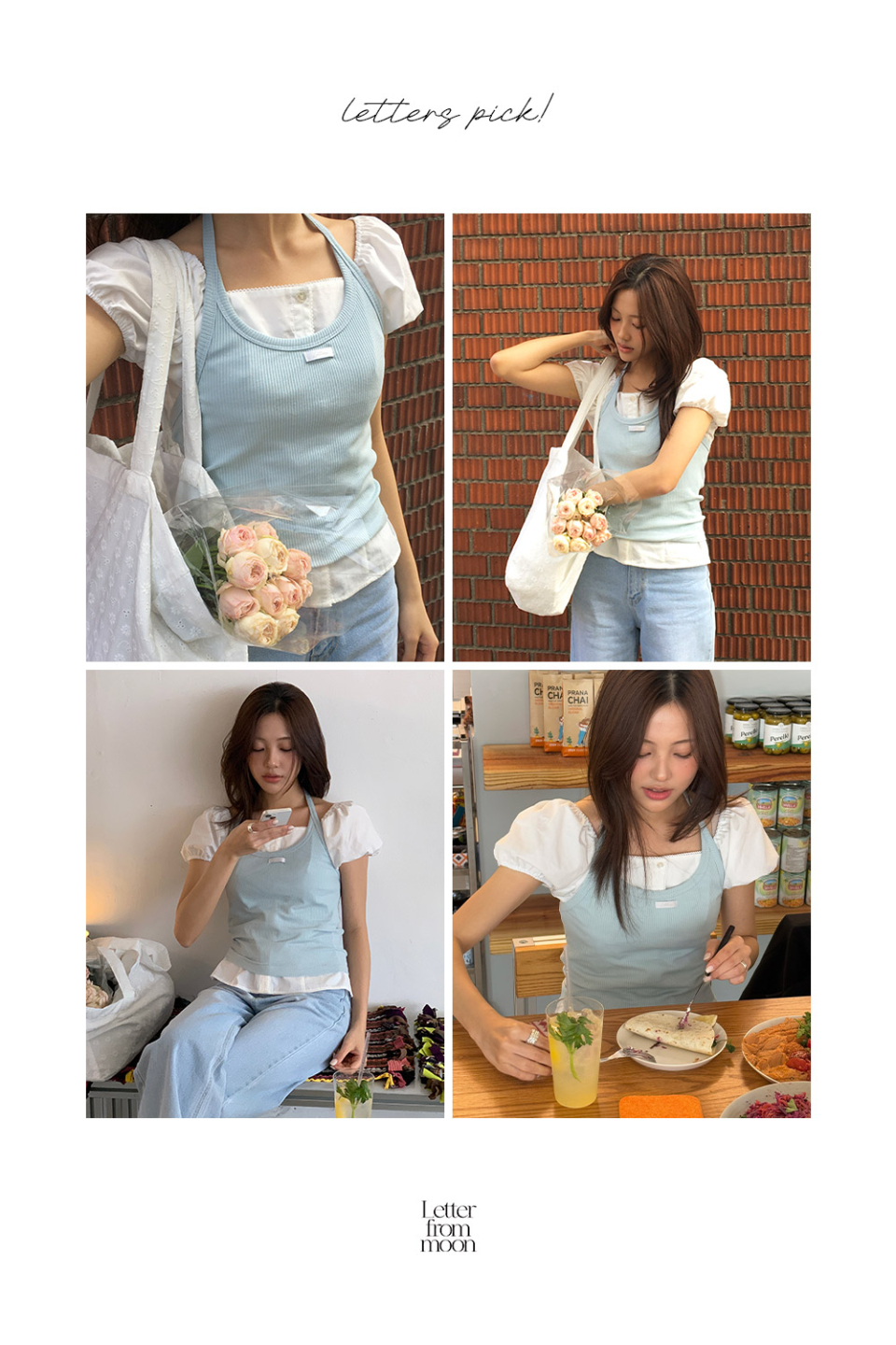 [남서연 Pick] 레터즈 레이스 버튼 홀터넥 탑 ( 멜란지그레이 )