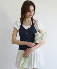 레터즈 레이스 버튼 홀터넥 탑 ( 네이비 )