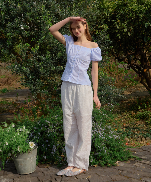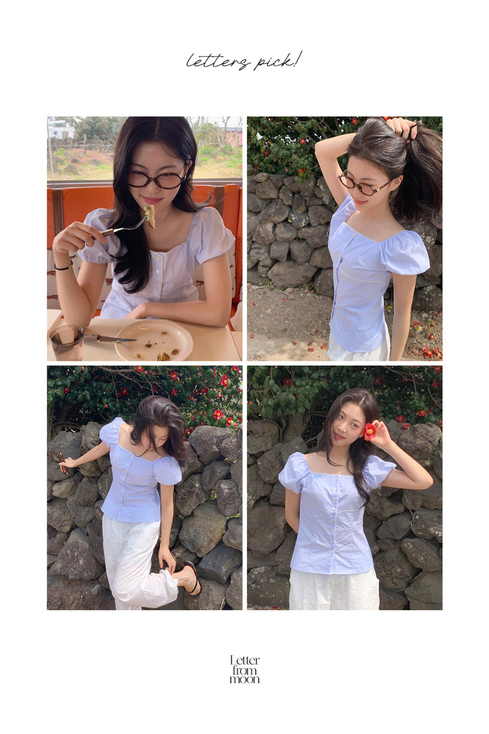 로지 레이스 퍼프 블라우스 ( 스트라이프 )