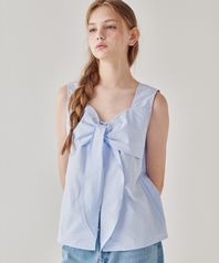 RIBBON BOW SLEEVELESS BLOUSE SOFT BLUE