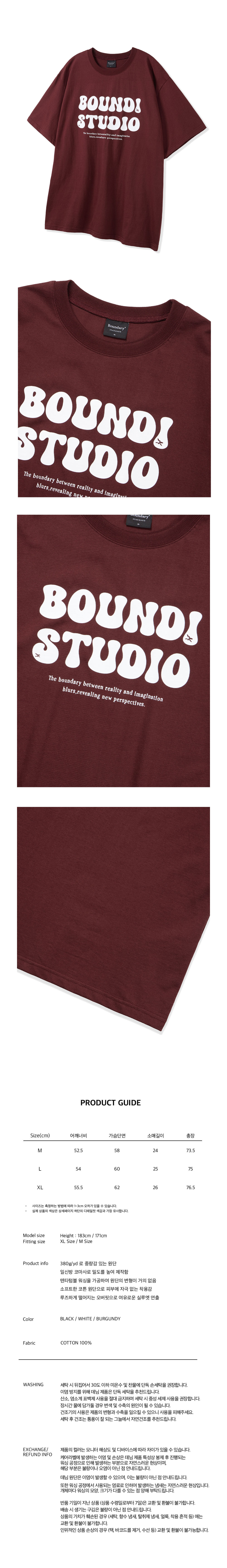 소프트코튼 오버핏 바운디 스튜디오 반팔티 [버건디]