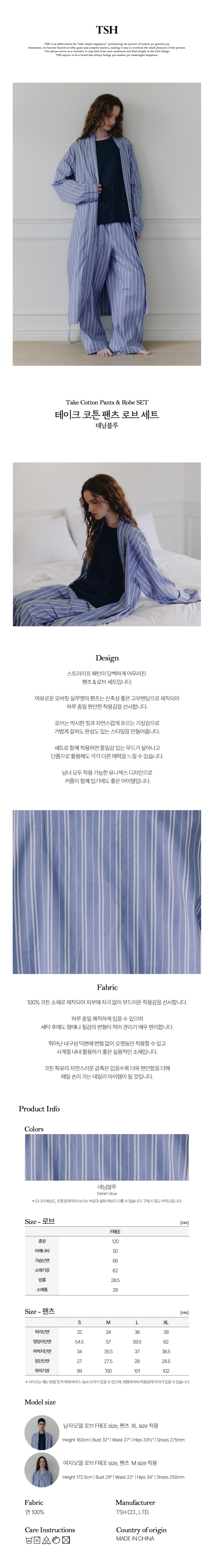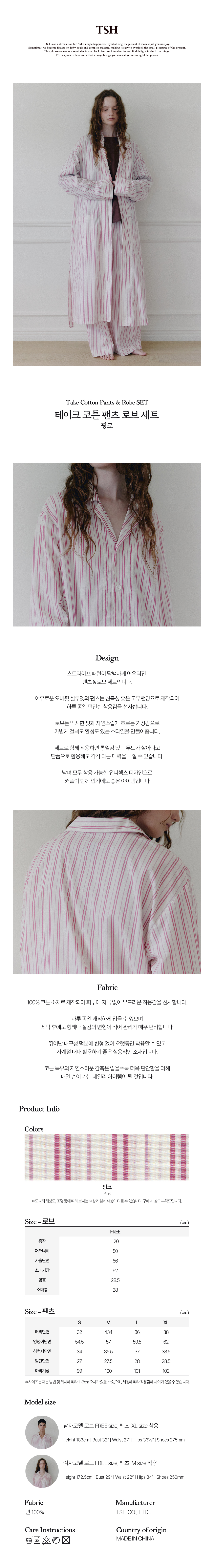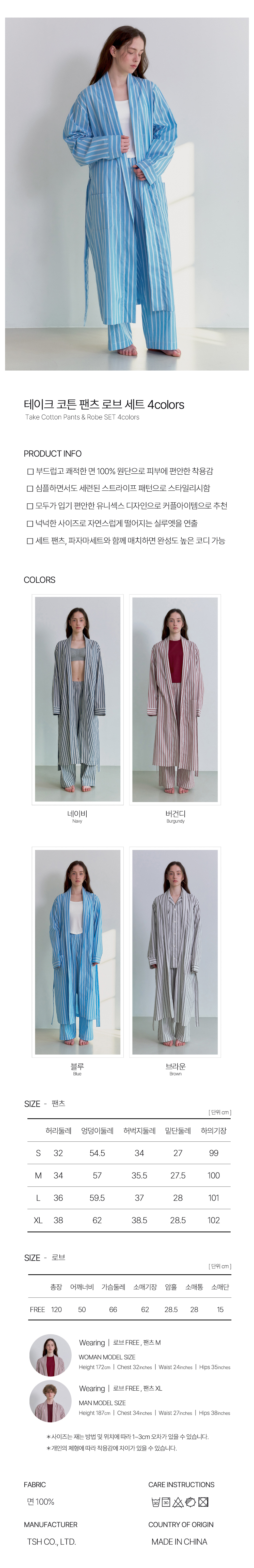 테이크 코튼 팬츠 로브 세트 구성 : 팬츠 1P, 로브 1P