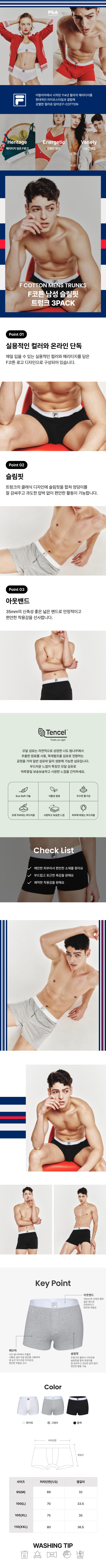 F코튼 남성 슬림핏 트렁크 3팩(FI4TKH1124MBLK)
