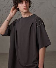숄더 주름 핫피스T(챠콜)