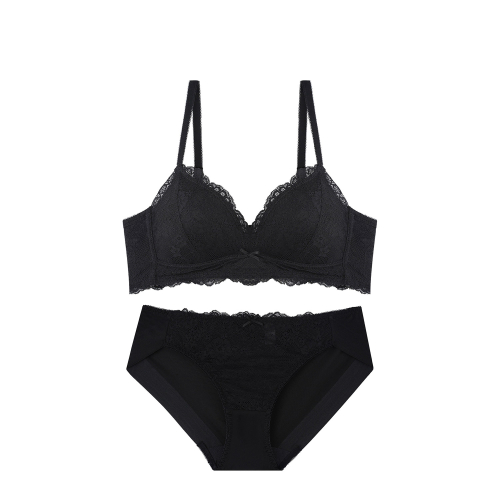 노와이어 레이스 브라렛 팬티 세트_블랙