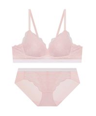 소프트핏 노와이어 레이스 브라 팬티 세트 - 핑크