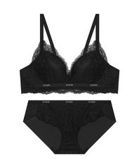 볼륨 메이커 레이스 노와이어 브라팬티세트 - 블랙