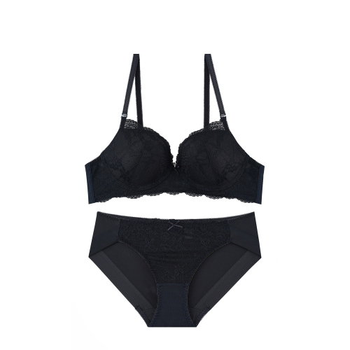볼륨 노와이어 레이스 브라 팬티 세트_다크그레이