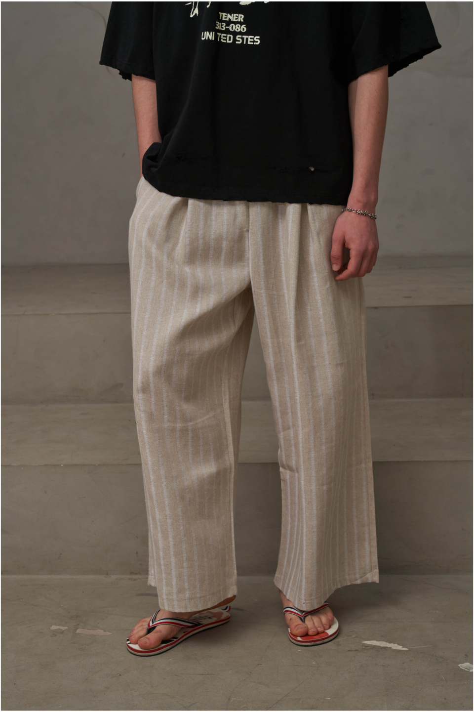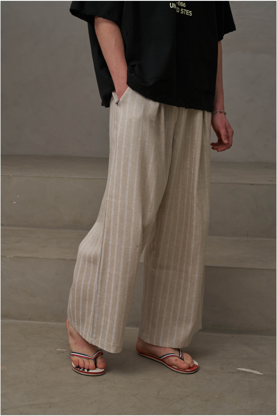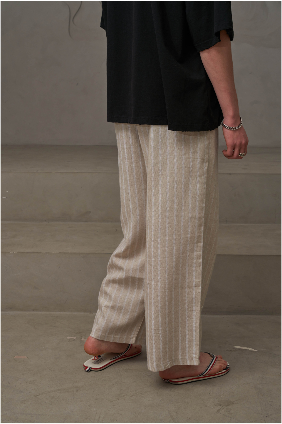 린넨 스트라이프 밴딩팬츠(아이보리)
