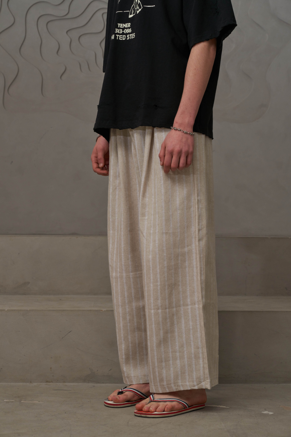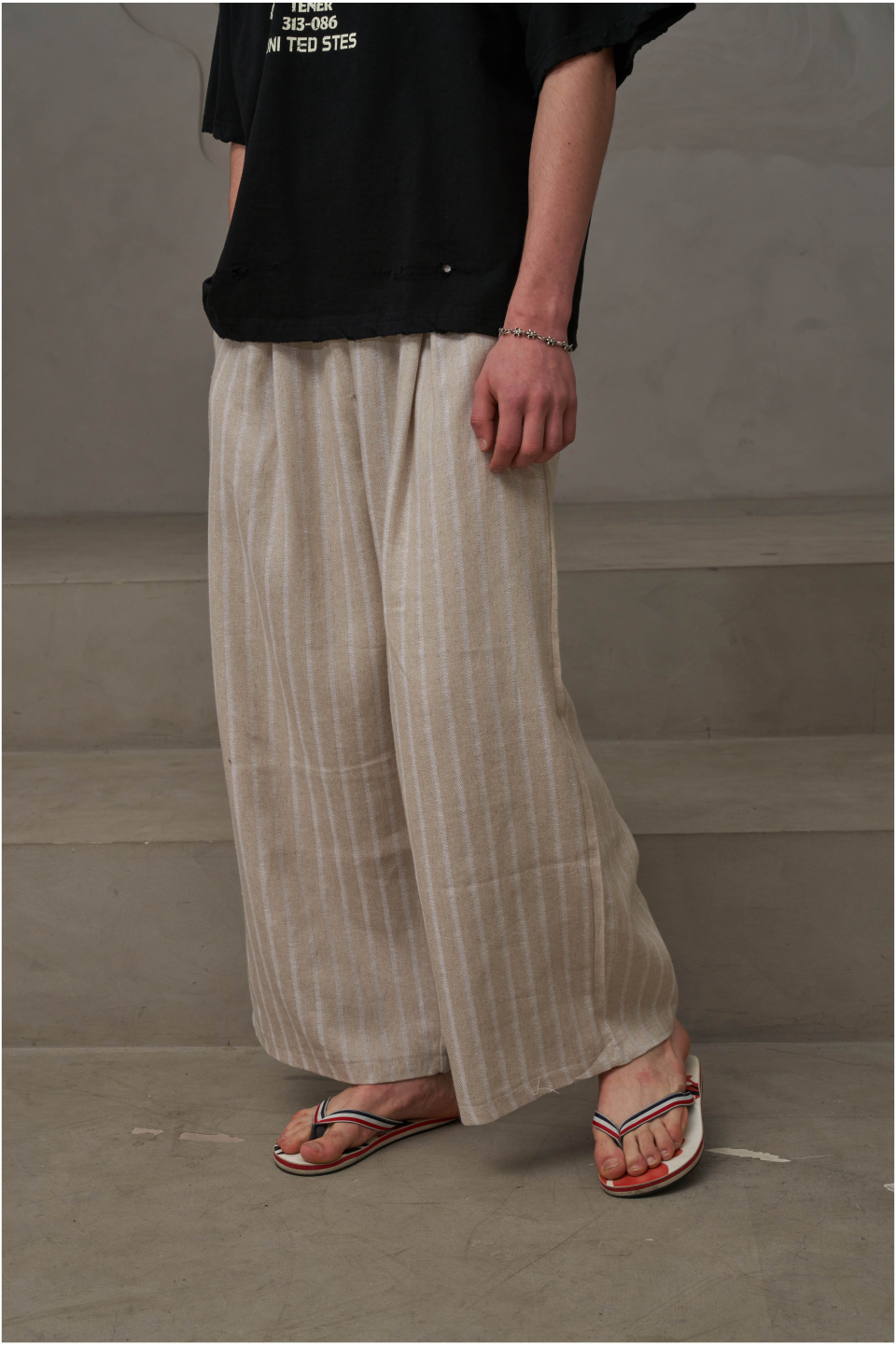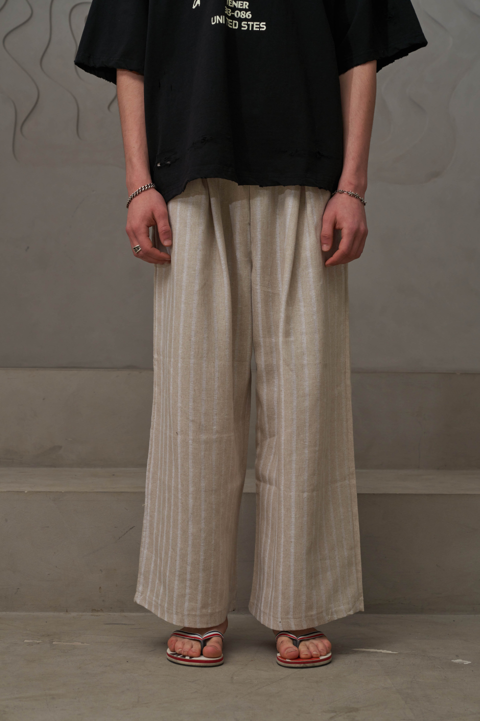 린넨 스트라이프 밴딩팬츠(아이보리)