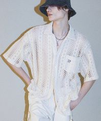 JN161 CROCHET ETHNIC 1/2 SHIRT - BEIGE