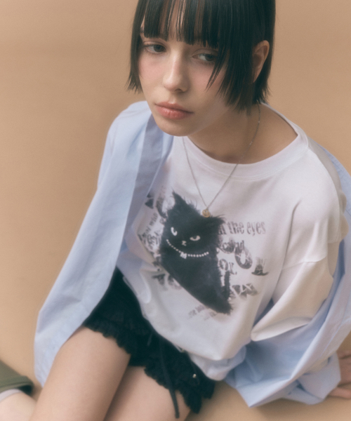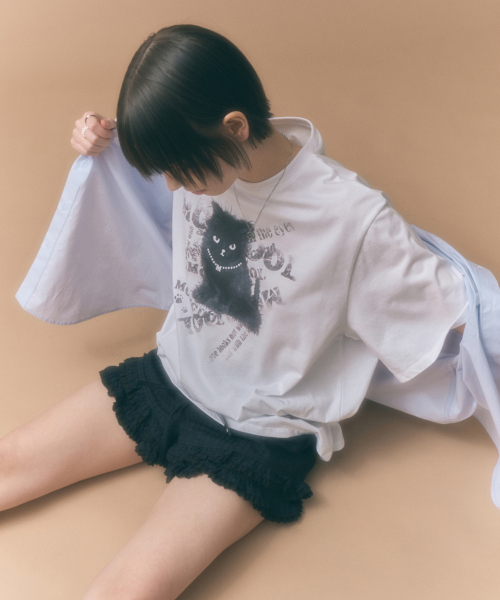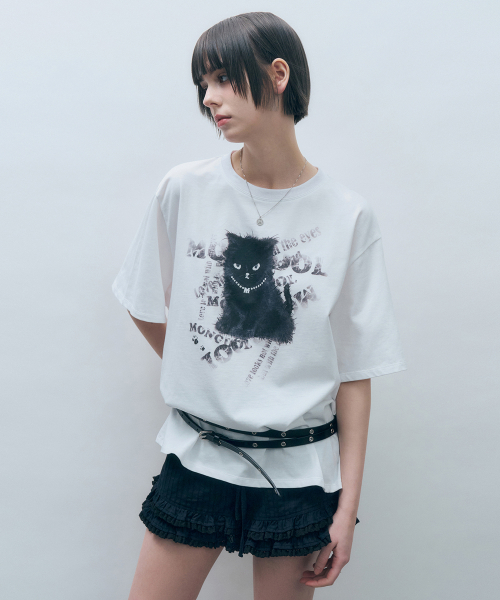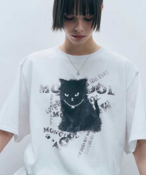 블랙 캣 오버핏 반팔 티셔츠 화이트 MDTS069WHITE