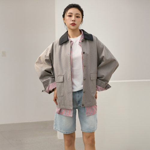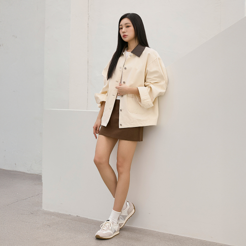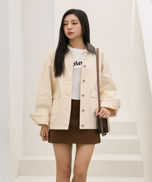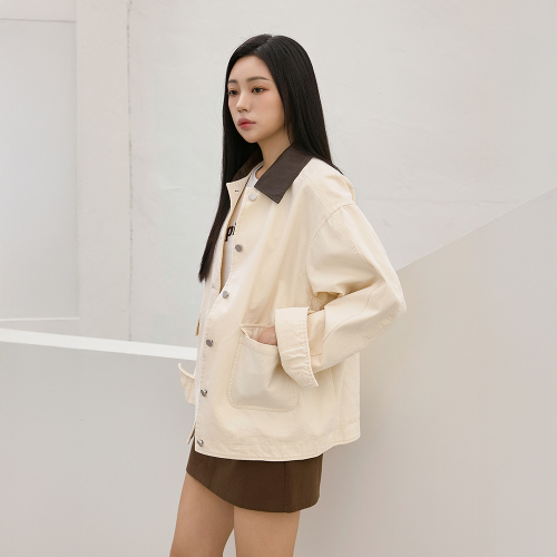 배색 카라 코튼 워크 자켓