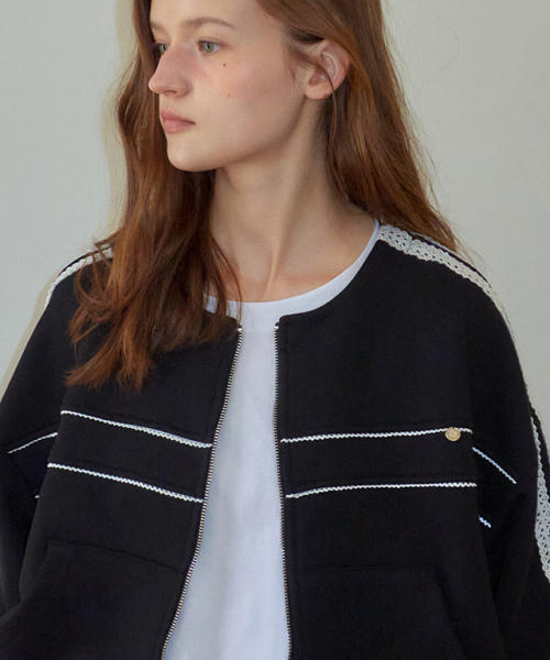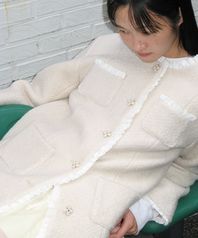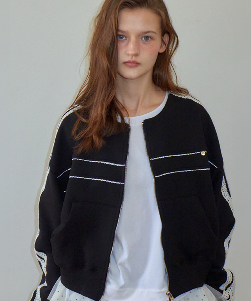 LACE TORCHON TERRY WOOL TWEED JACKET CREAM