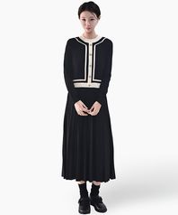 하객룩 니트 배색 플리츠 롱원피스_블랙