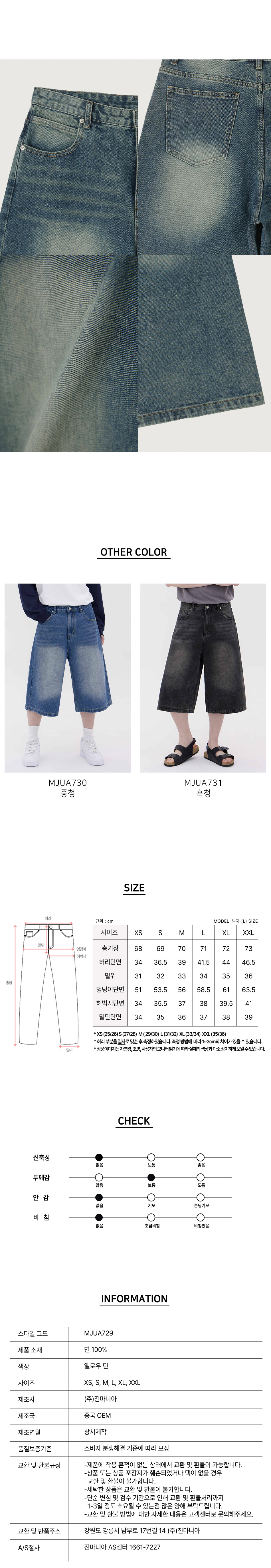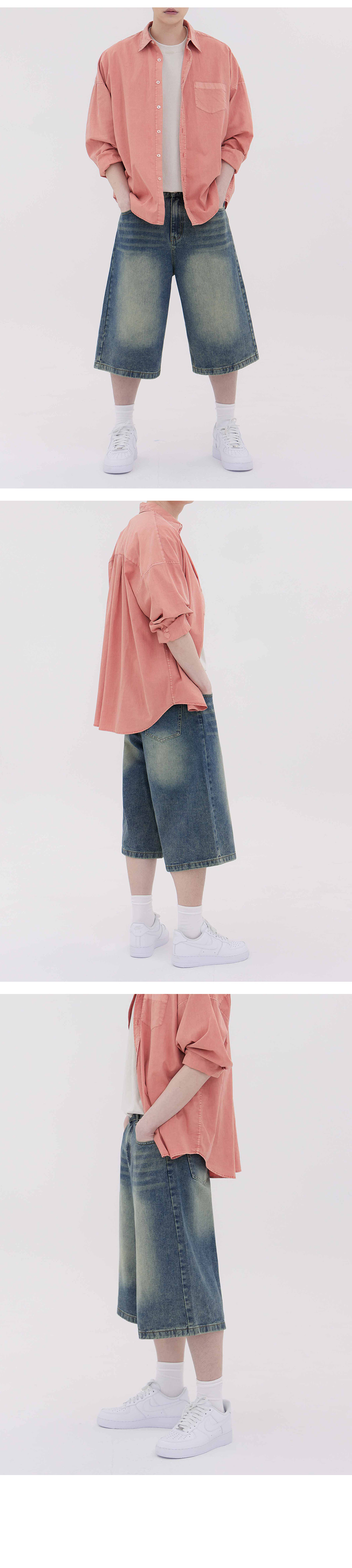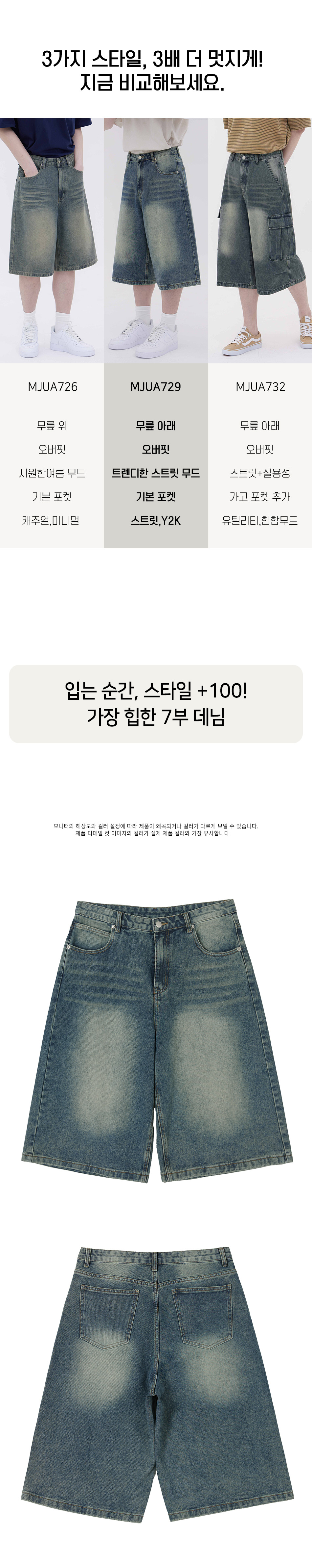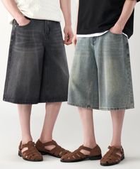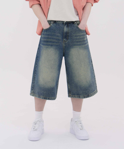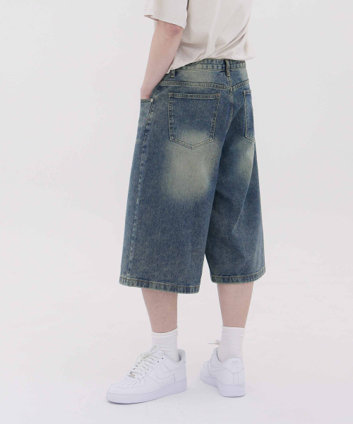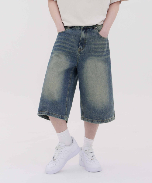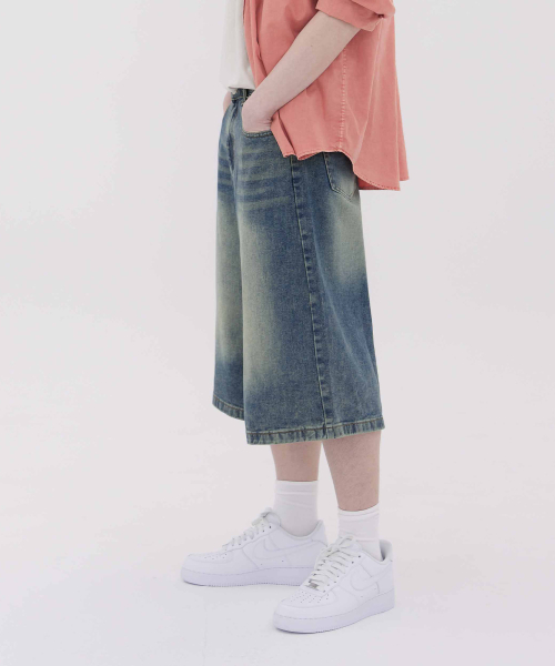버뮤다 캣 브러쉬 워시드 와이드 하프 데님팬츠3Color