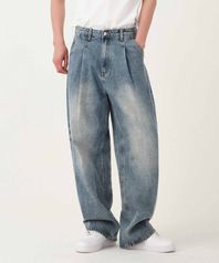 원턱 워시드 벌룬핏 와이드 데님 팬츠 유니섹스 (연청)