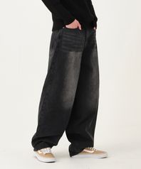 와이드 빅 벌룬 오버핏 데님 팬츠 유니섹스 (블랙)