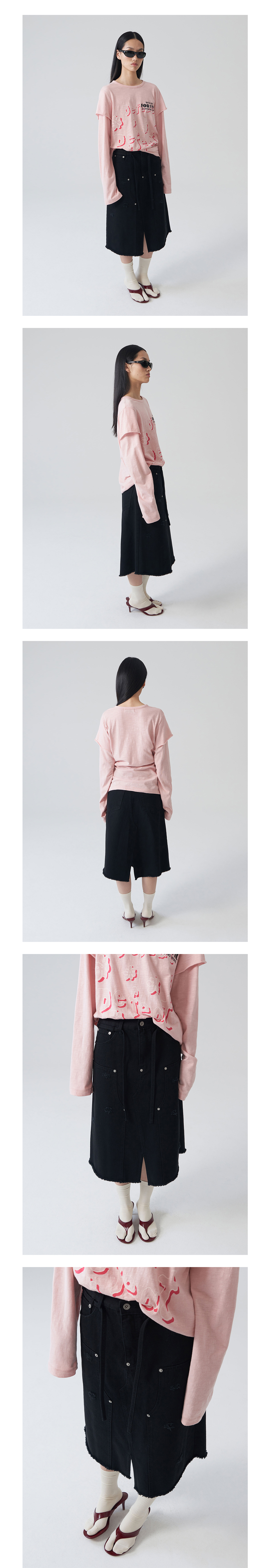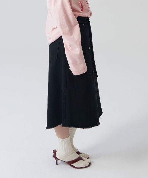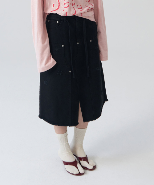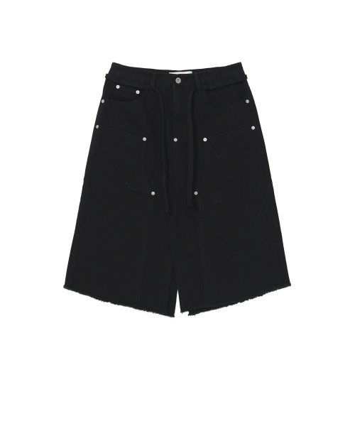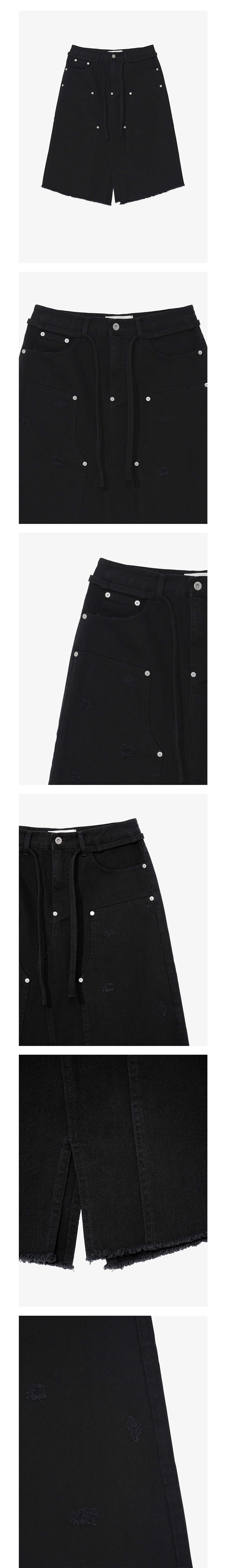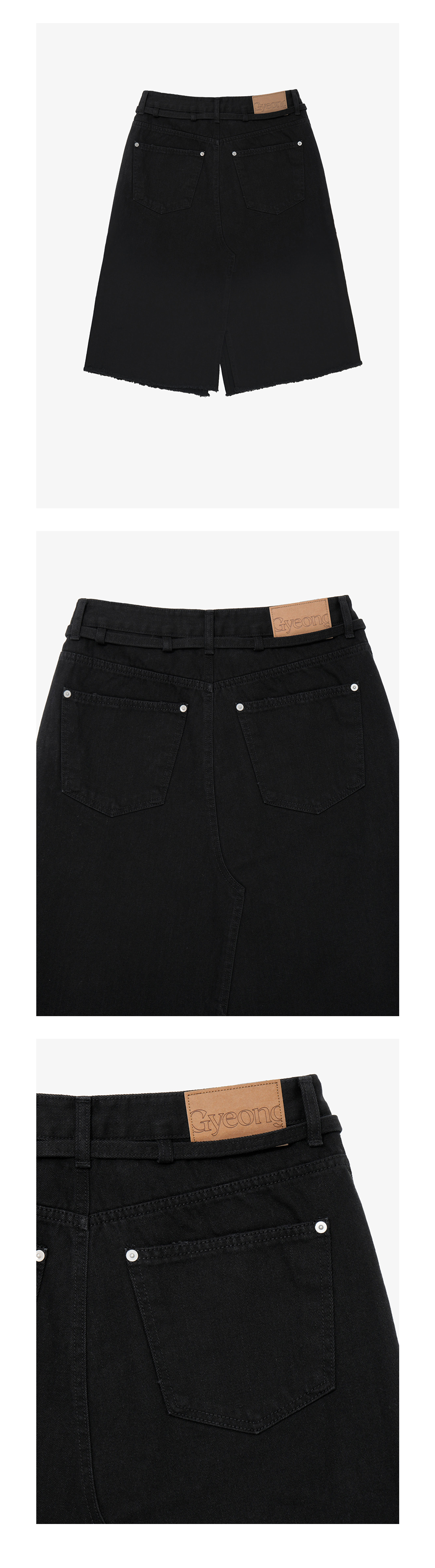 - 스커트 하단 프린지 티데일 - 전면 오비 하단 리벳 디테일