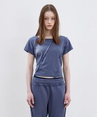 - 빈티지한 워싱감의 더블 니 패치 스커트