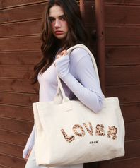 Leopard Print Canvas bag Cream