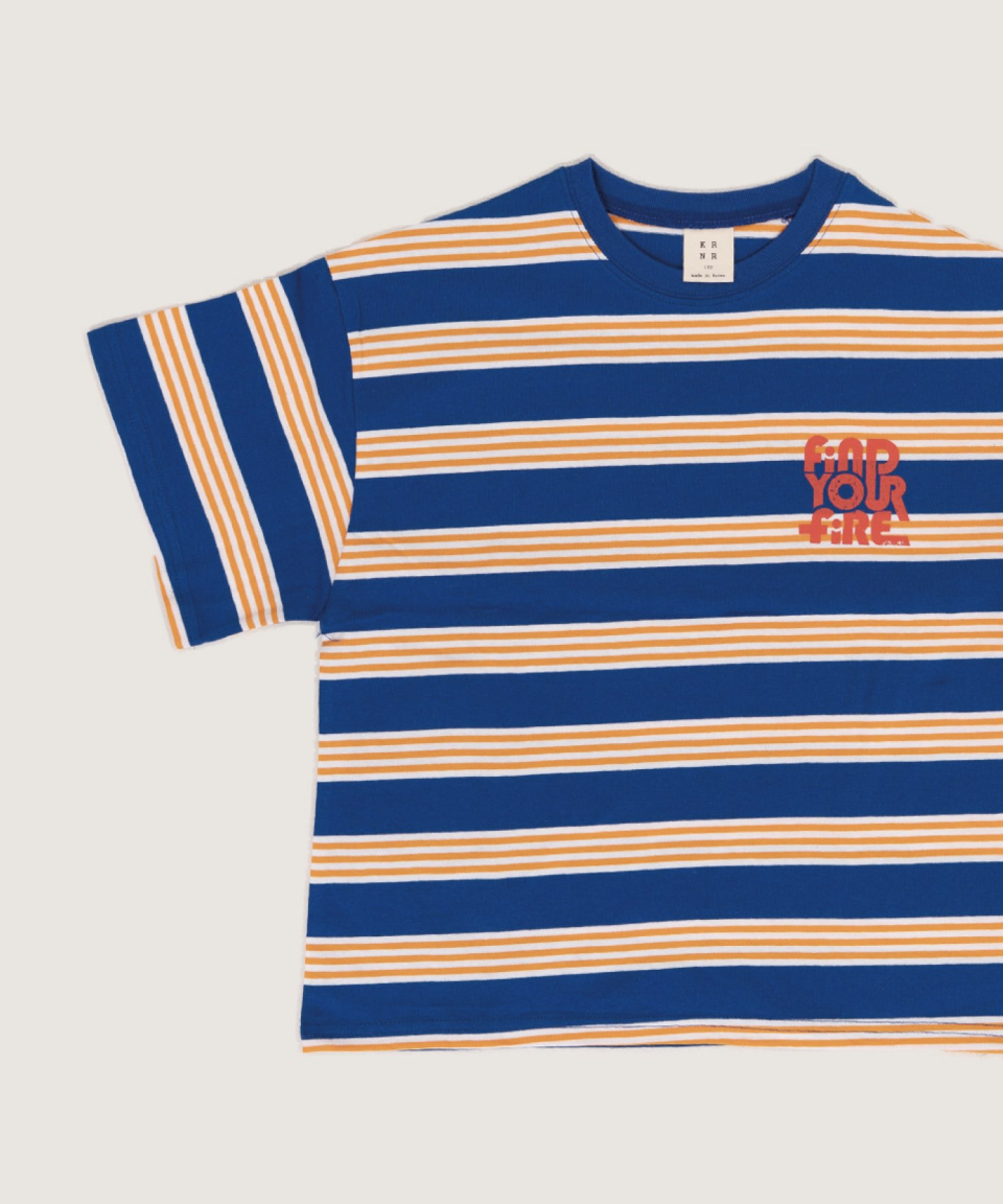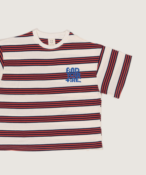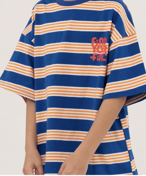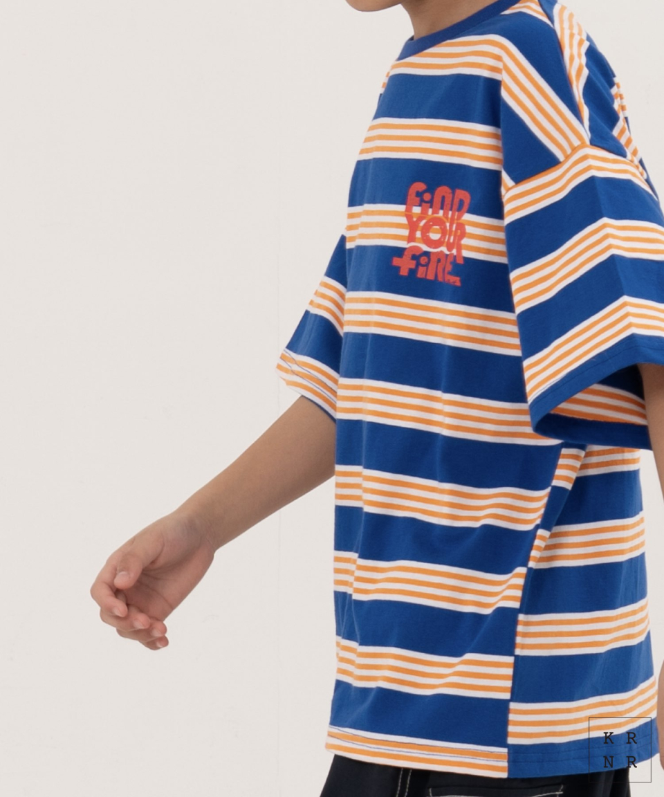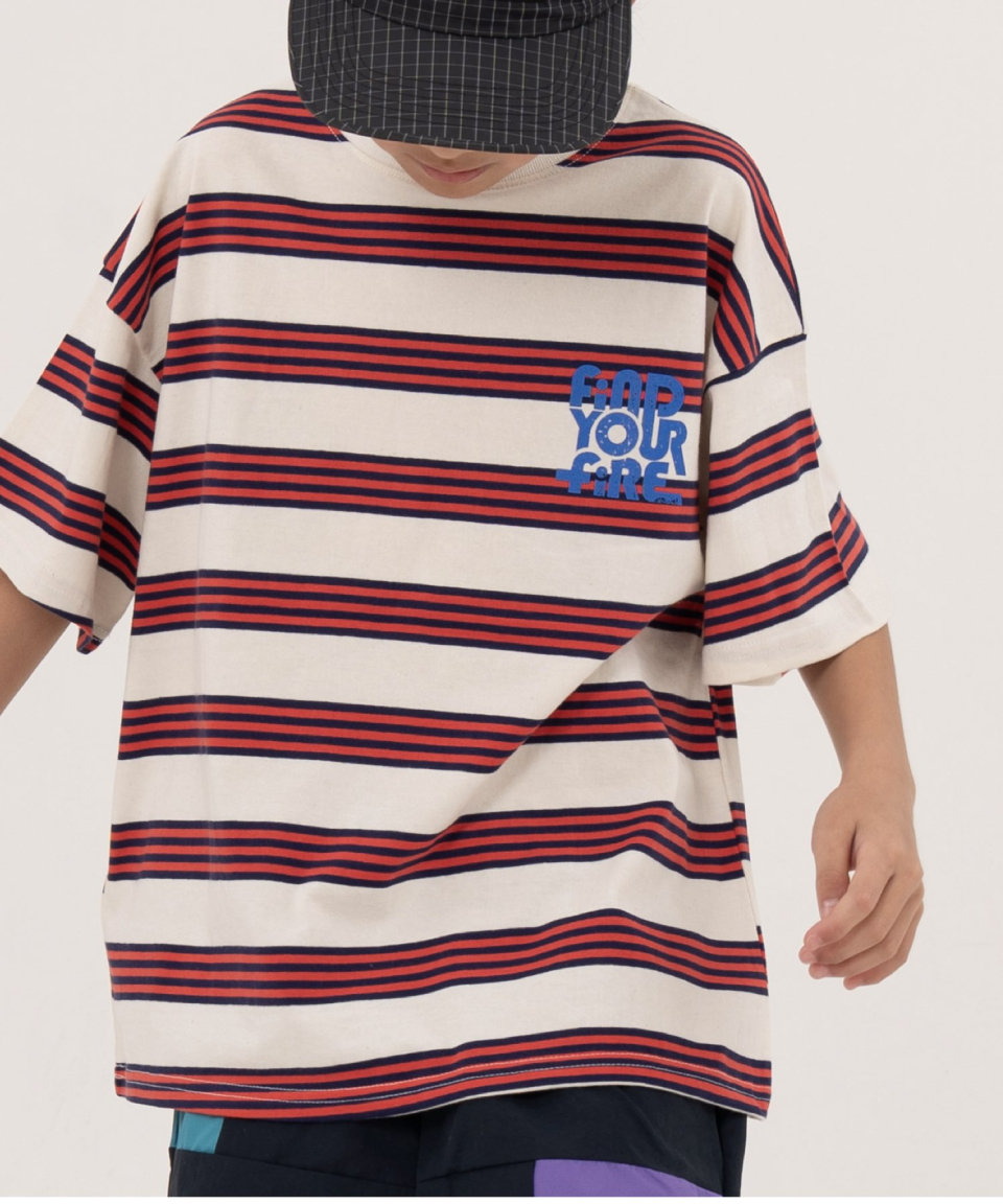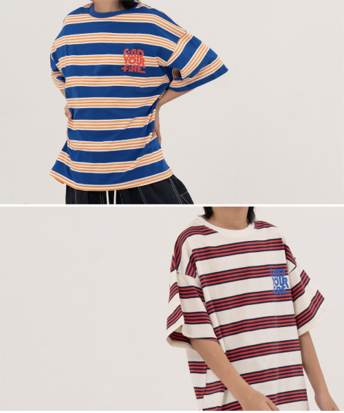 파이어 오버사이즈 스트라이프 티셔츠 오프화이트, 블루
