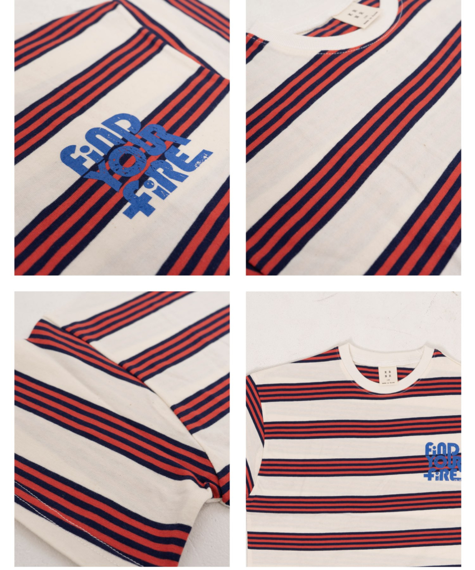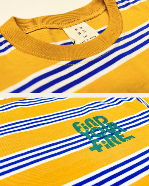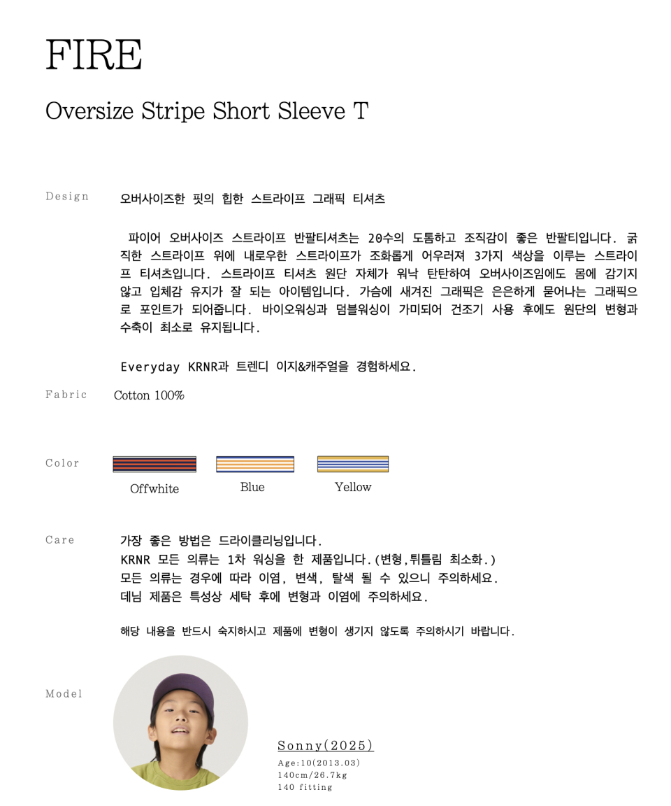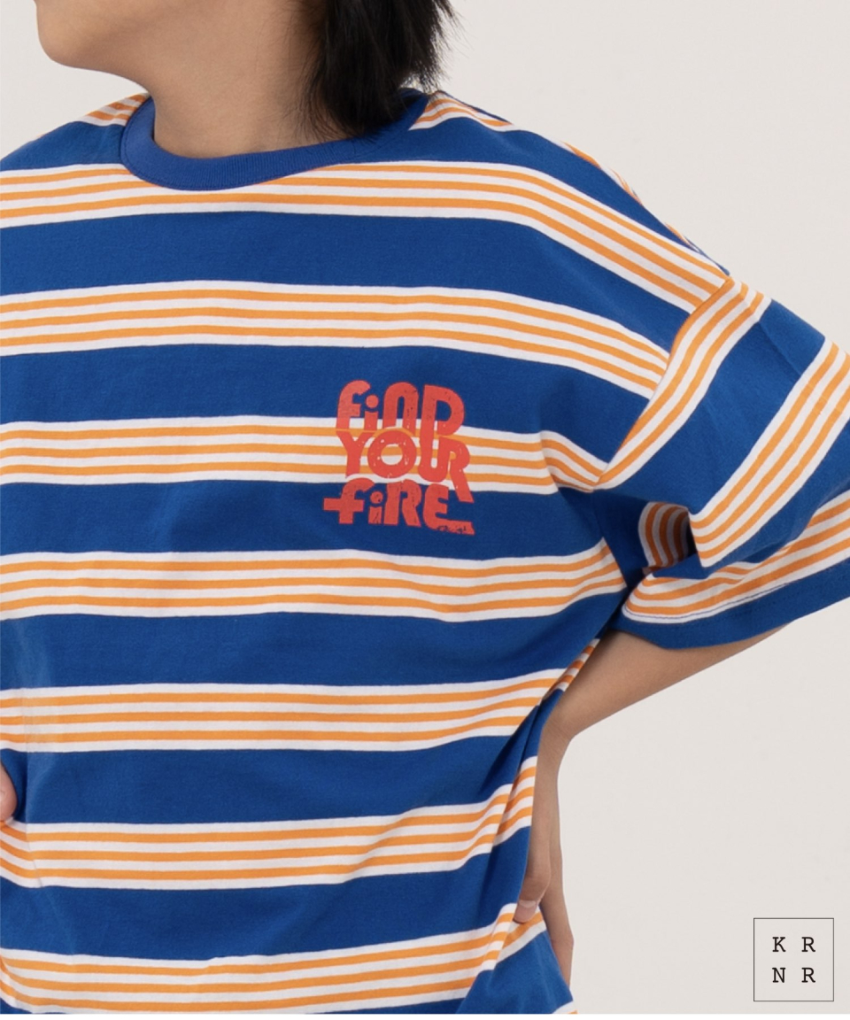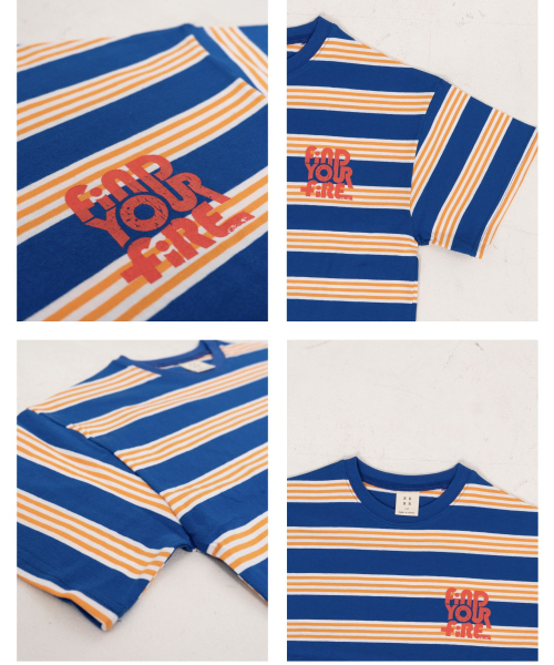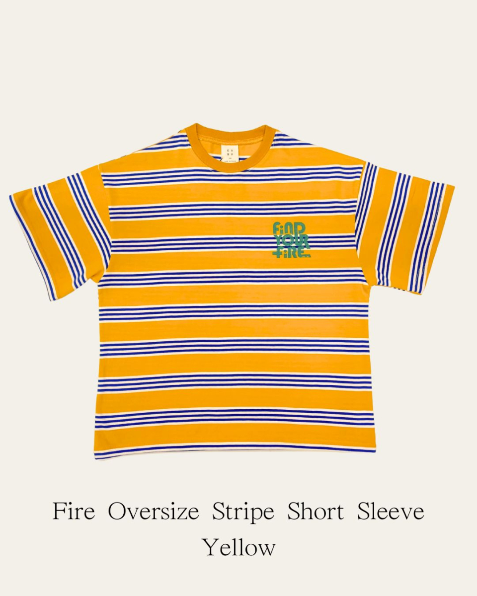 파이어 오버사이즈 스트라이프 티셔츠 오프화이트, 블루