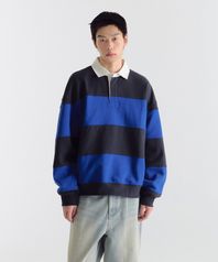 오버사이즈 스트라이프 럭비 스웨트셔츠 [네이비/블루]