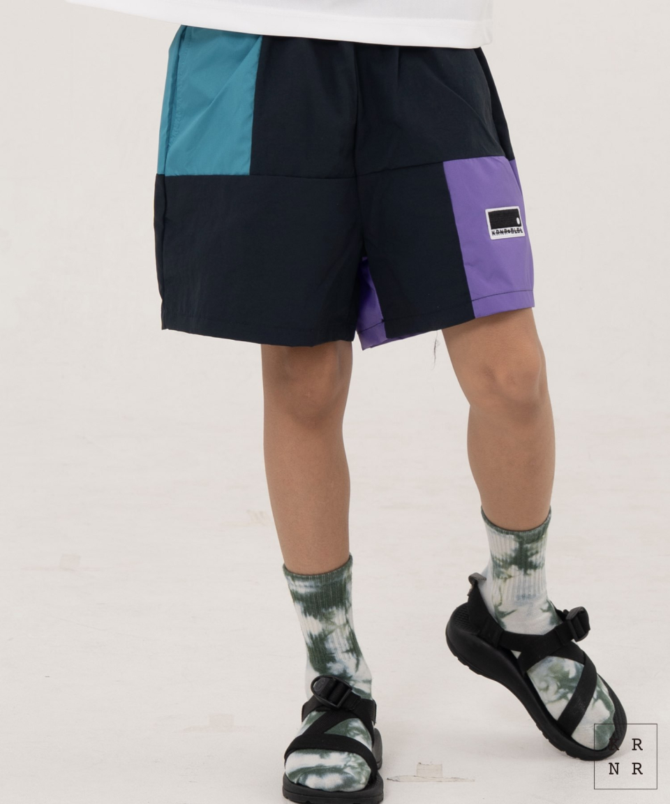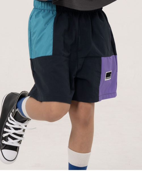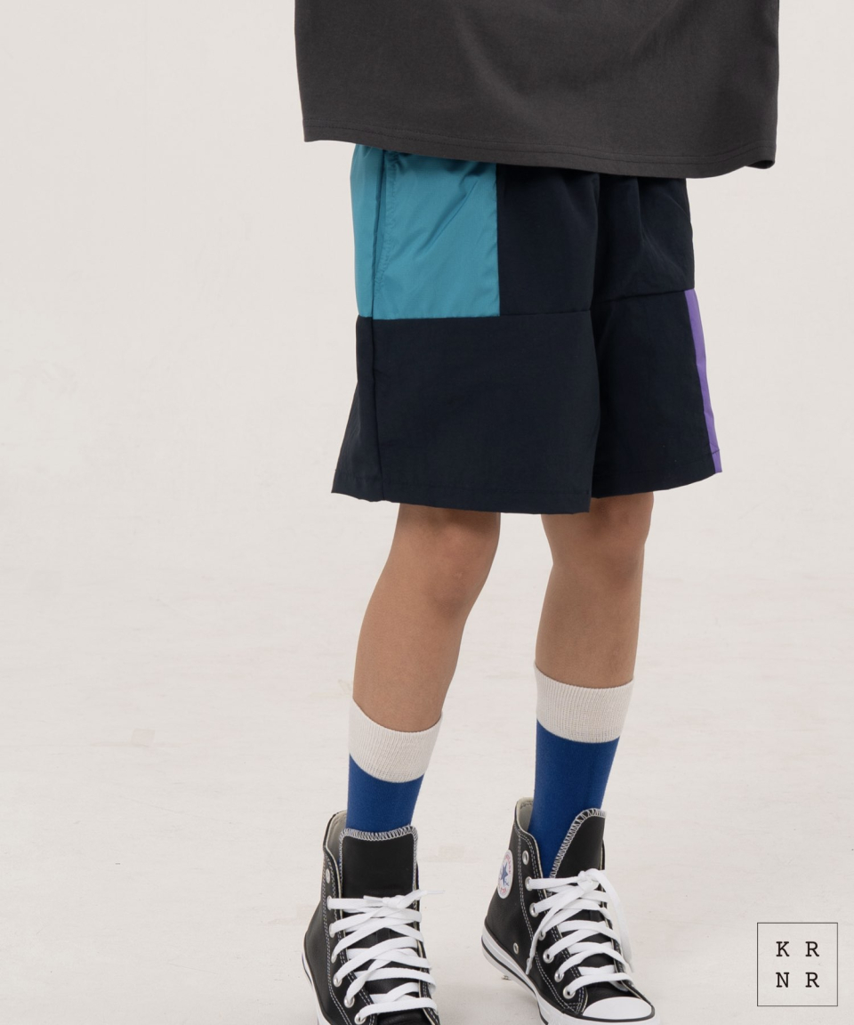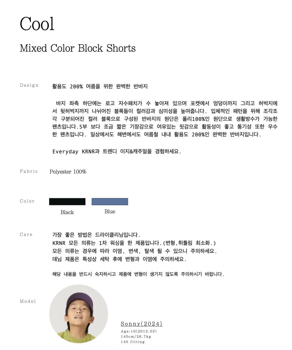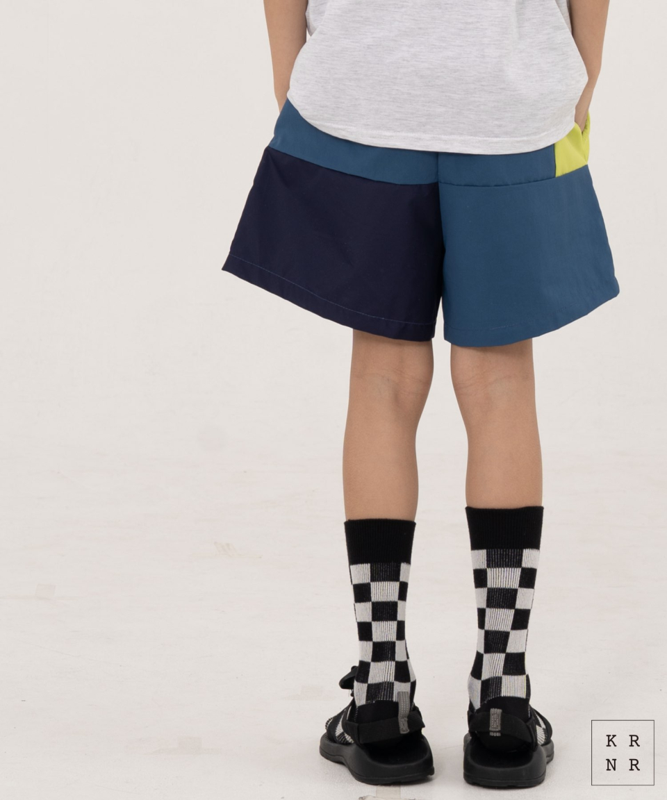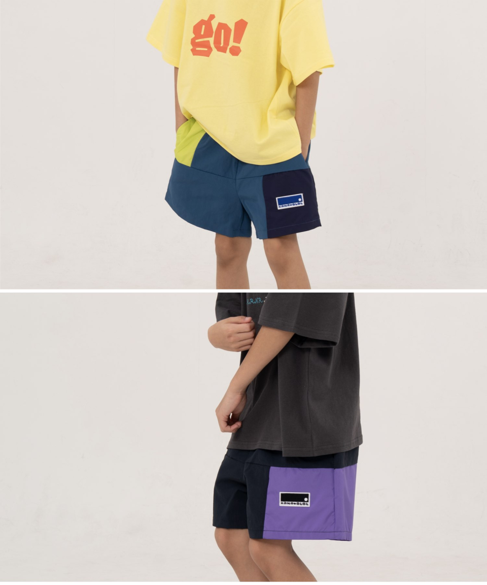 쿨 컬러 블록 쇼츠 팬츠 블루, 블랙