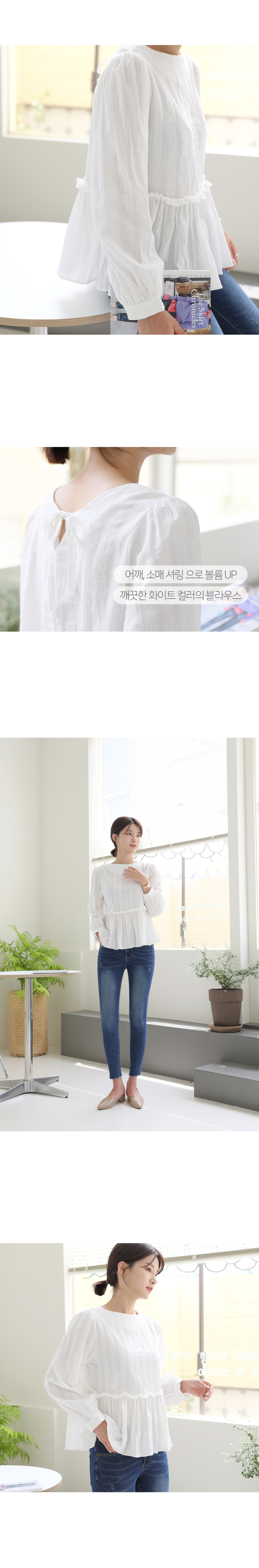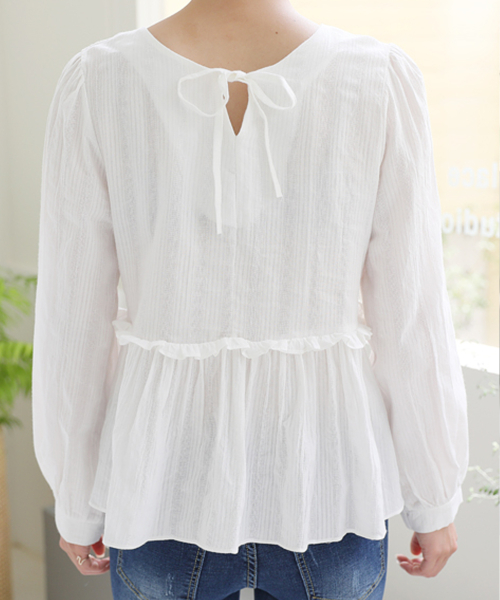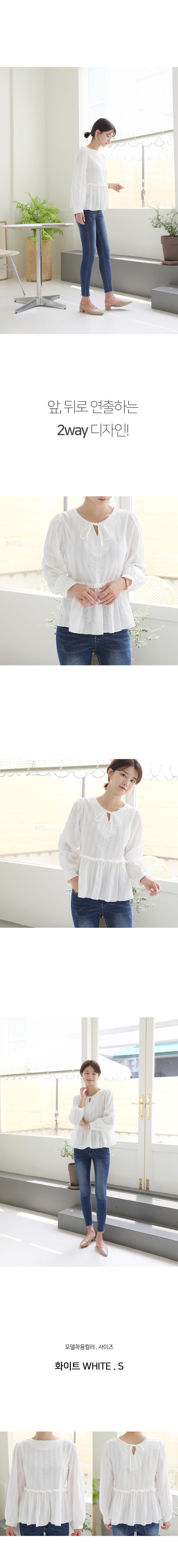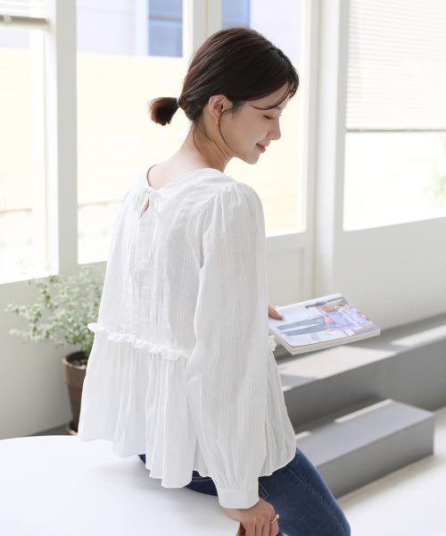 앞뒤 2WAY 연출 셔링러플디테일 긴팔 블라우스