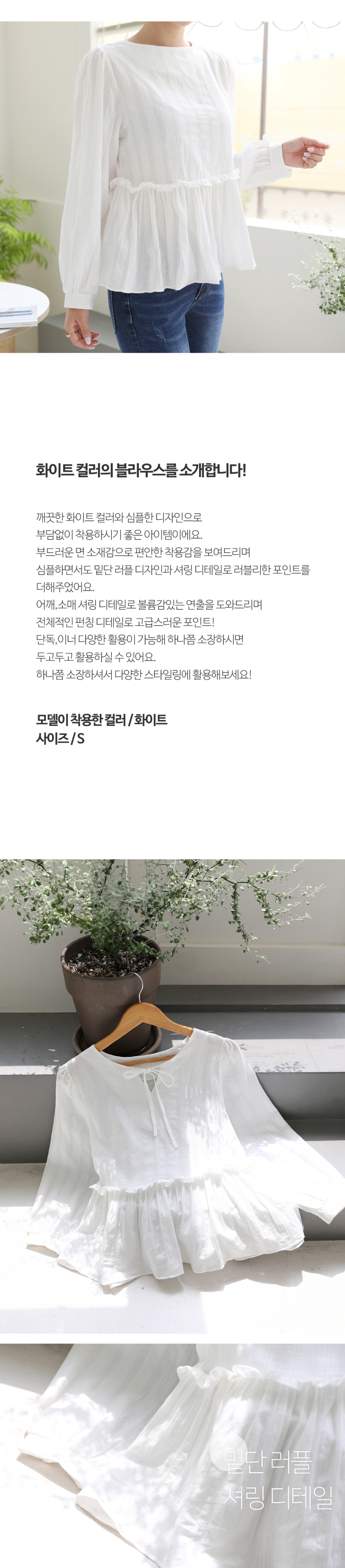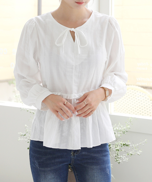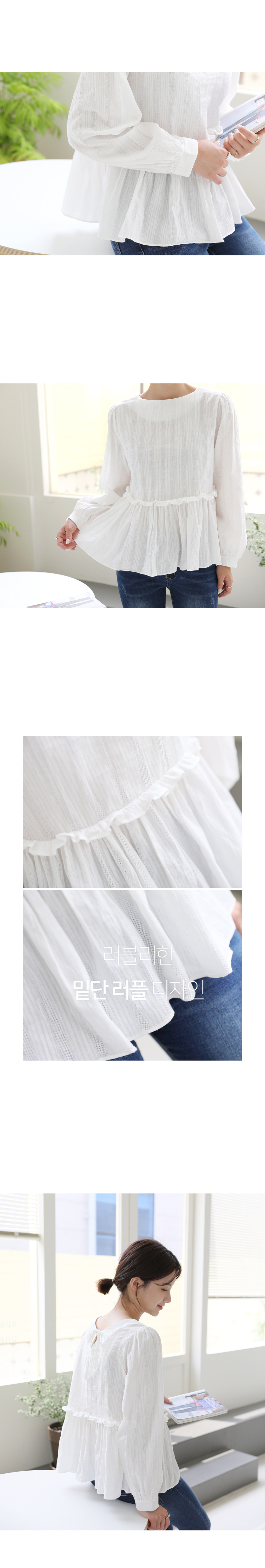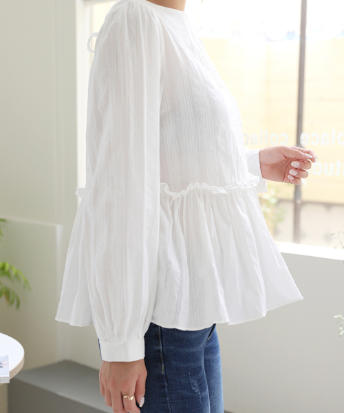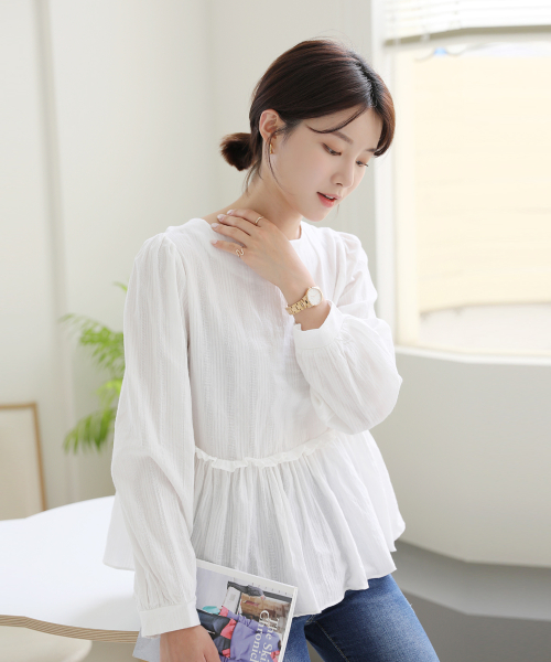 앞뒤 2WAY 연출 셔링러플디테일 긴팔 블라우스