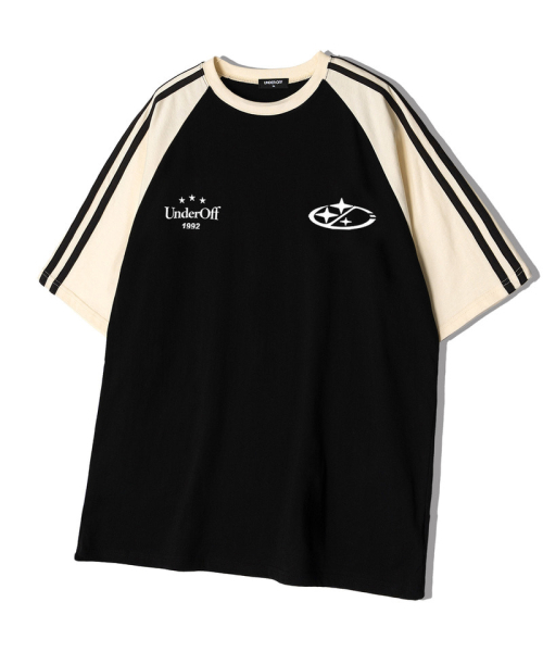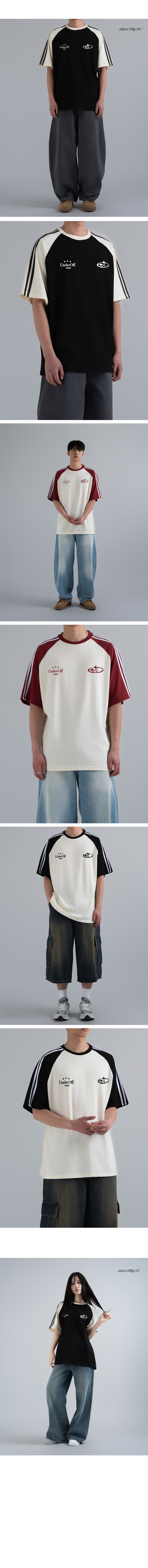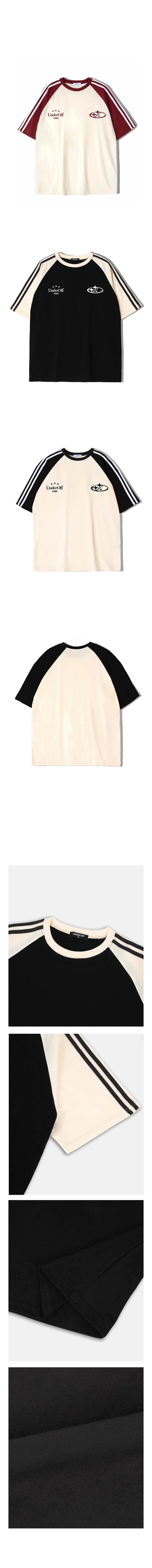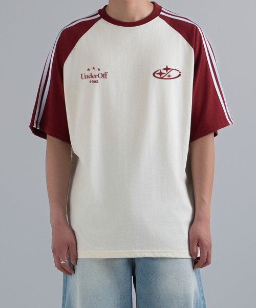 오버핏 래글런 트랙 라인 반팔 티셔츠 스타로고 버건디