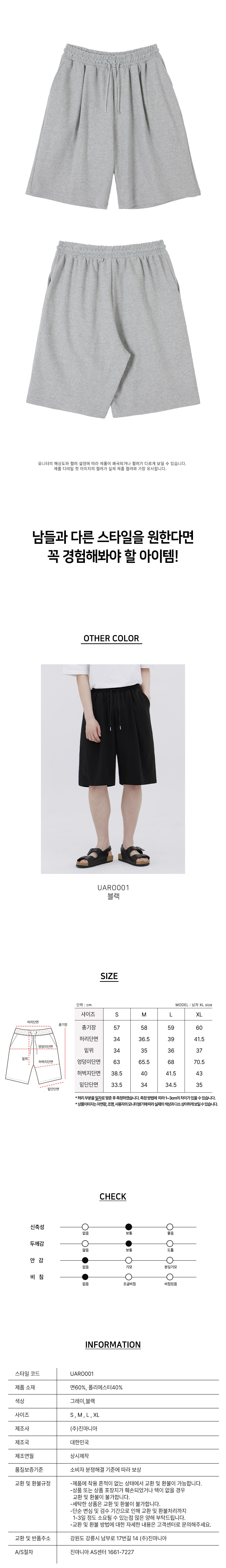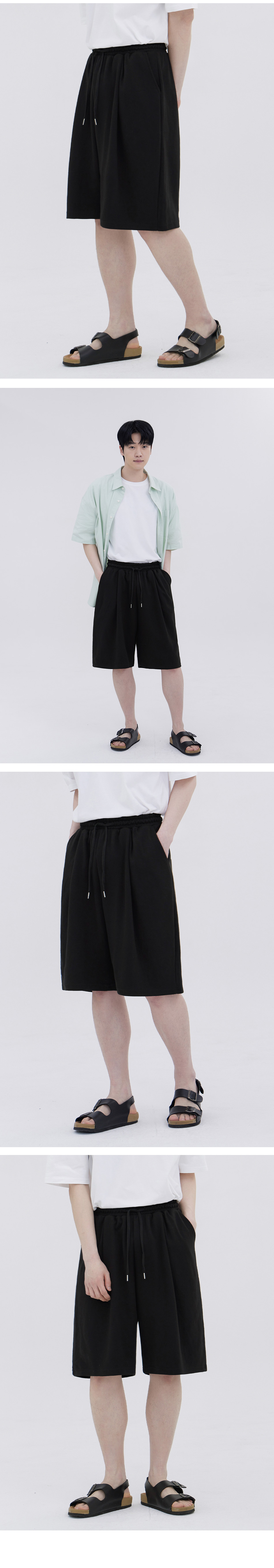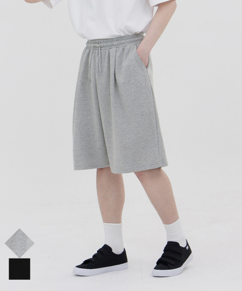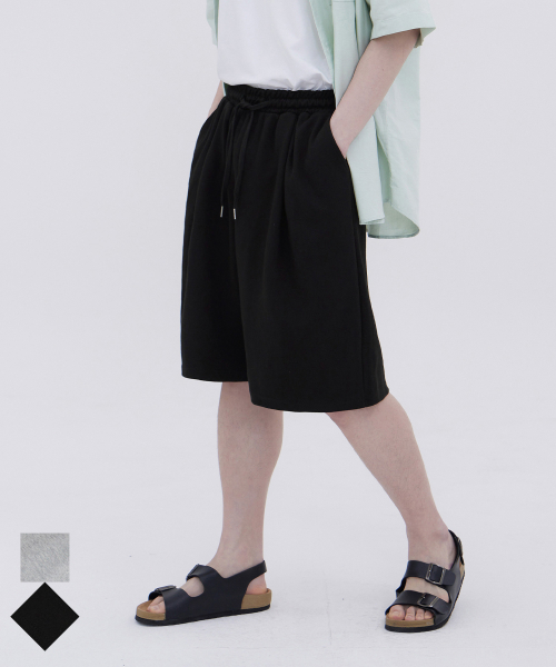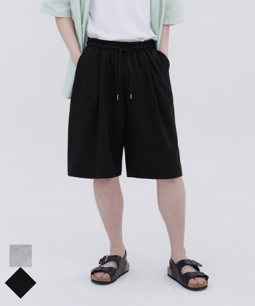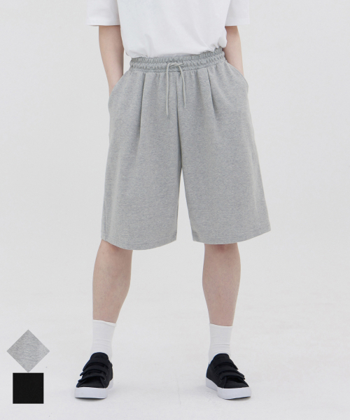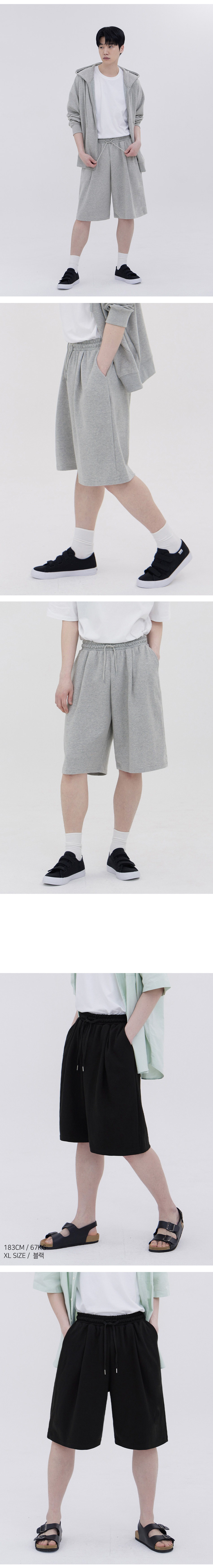 4핀턱 와이드 맥시 오버핏 트레이닝 밴딩 하프 팬츠 유니섹스 (2컬러)