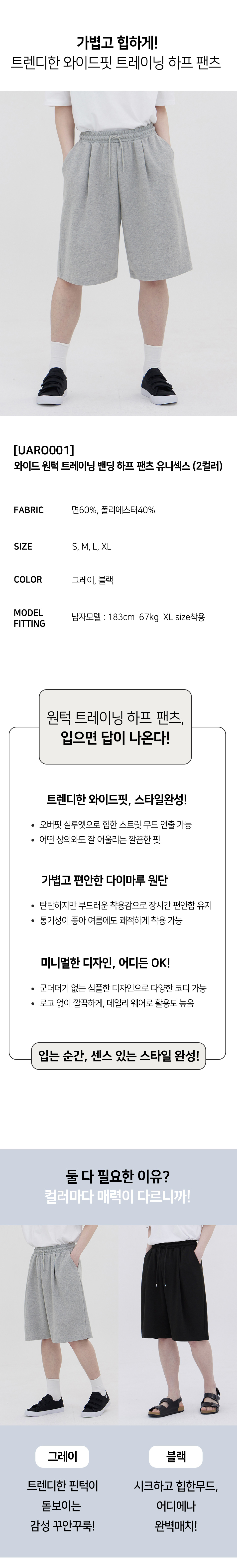 와이드 원턱 트레이닝 밴딩 하프 팬츠 유니섹스 (2컬러)