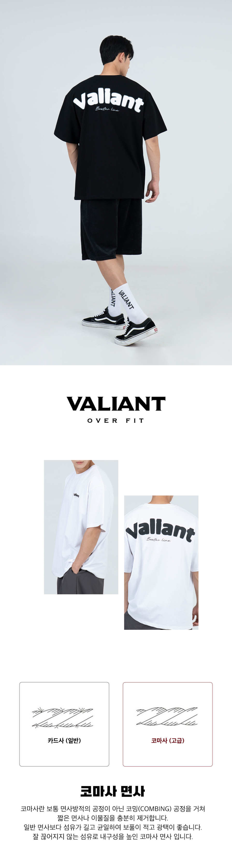 발리안트(VALIANT)는 '용맹한' '단호한'이란 뜻을 품고 있으며 편안한 오버 핏에 날을 세운 디자인으로 멋을 더하는 짐 웨어&스트릿 패션을 지향합니다.