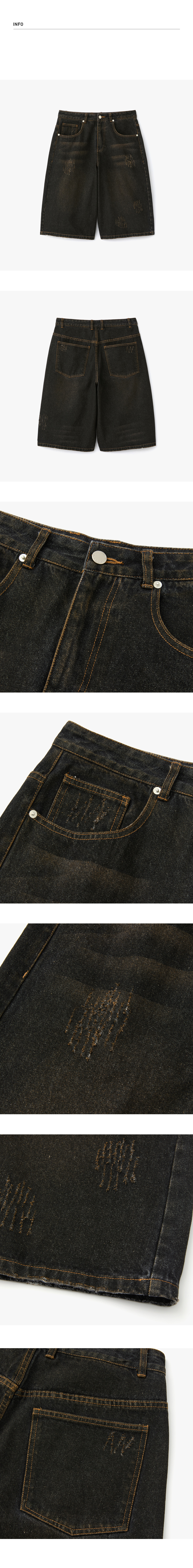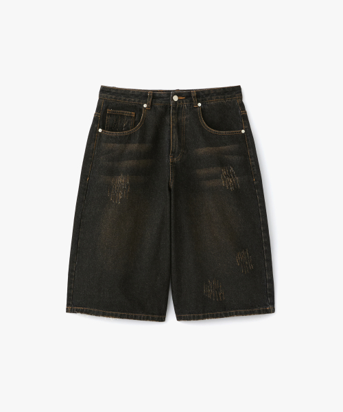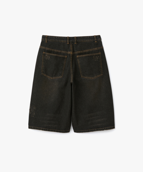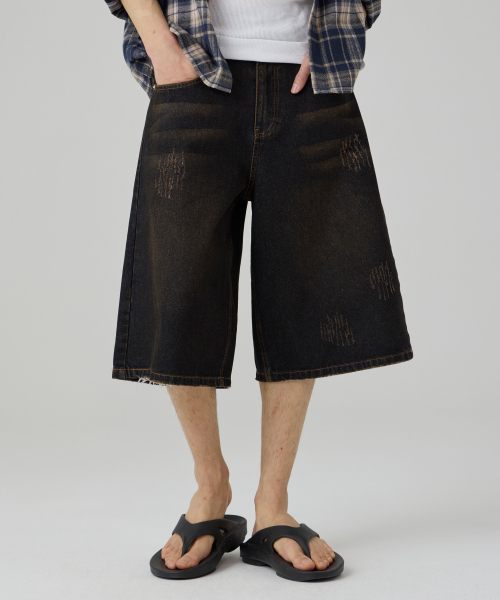 더티 데미지 워시드 버뮤다 데님팬츠 흑청
