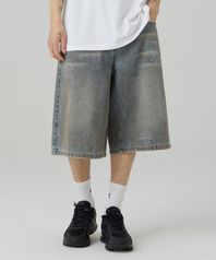 더티 데미지 워시드 버뮤다 데님팬츠 인디고
