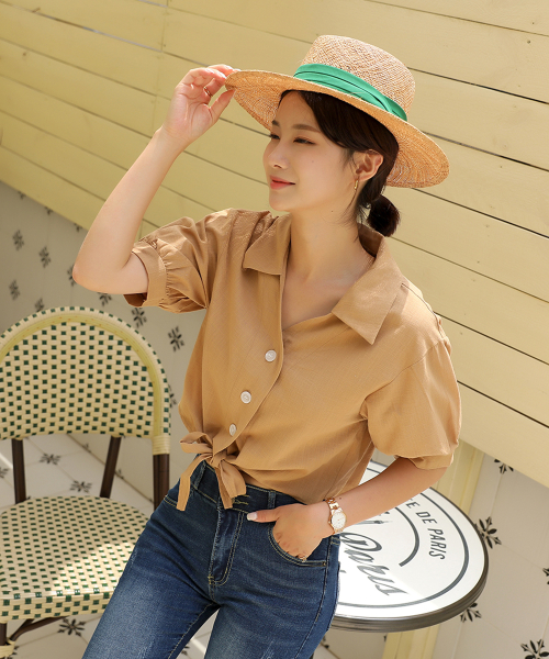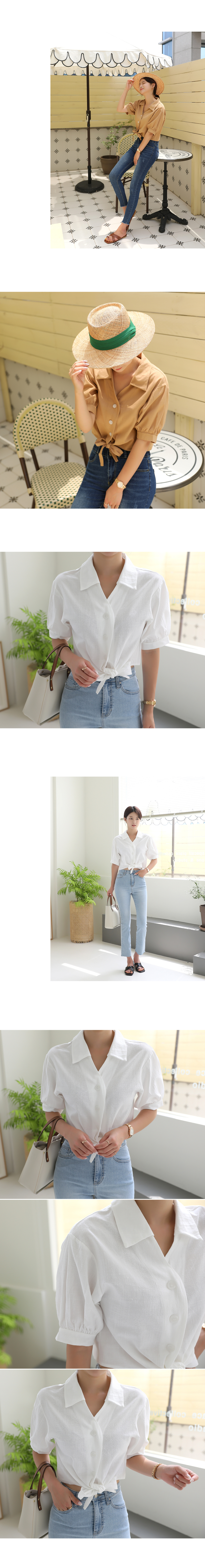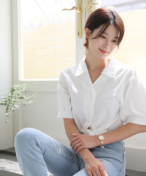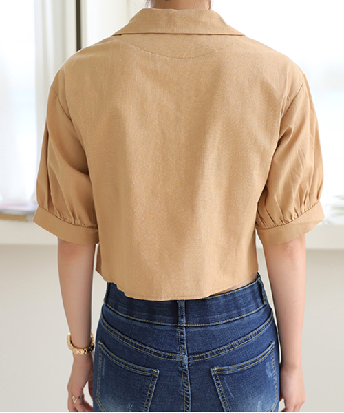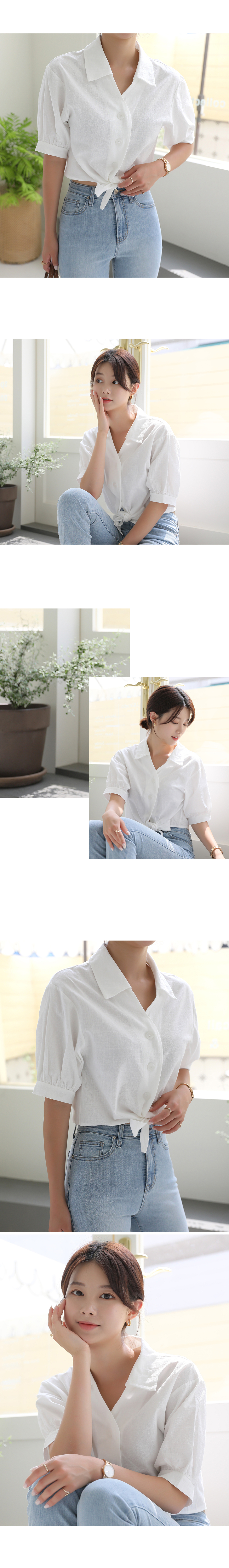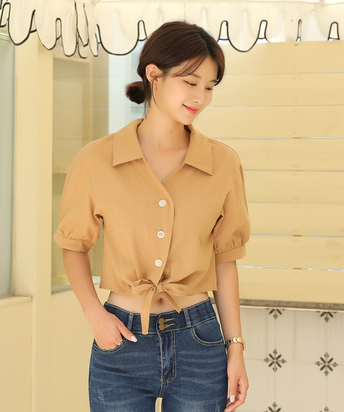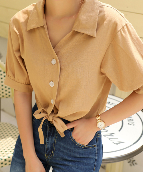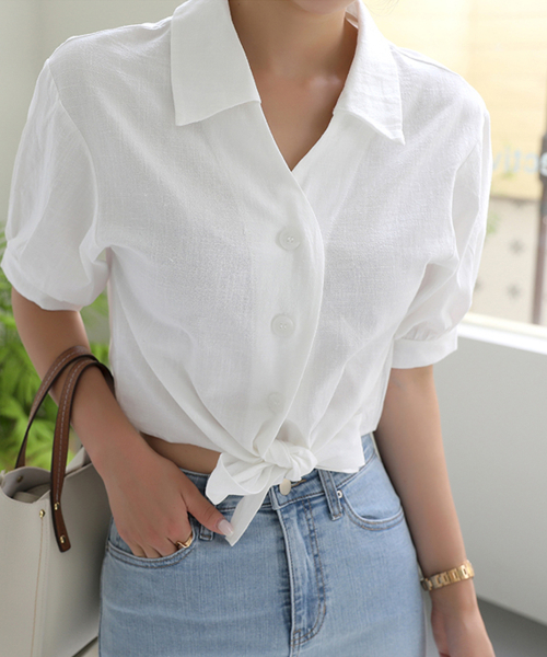 러블리퍼프 크롭 리본 반팔 블라우스