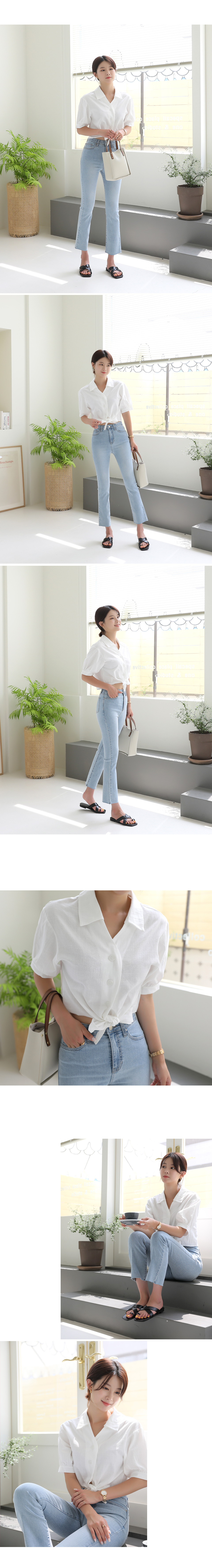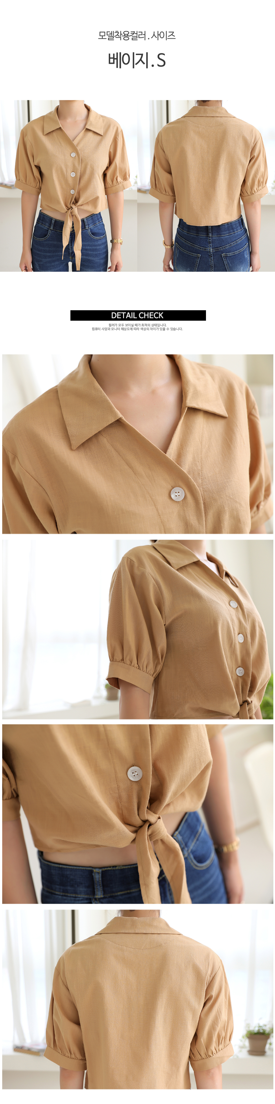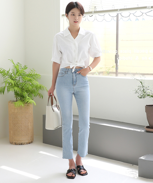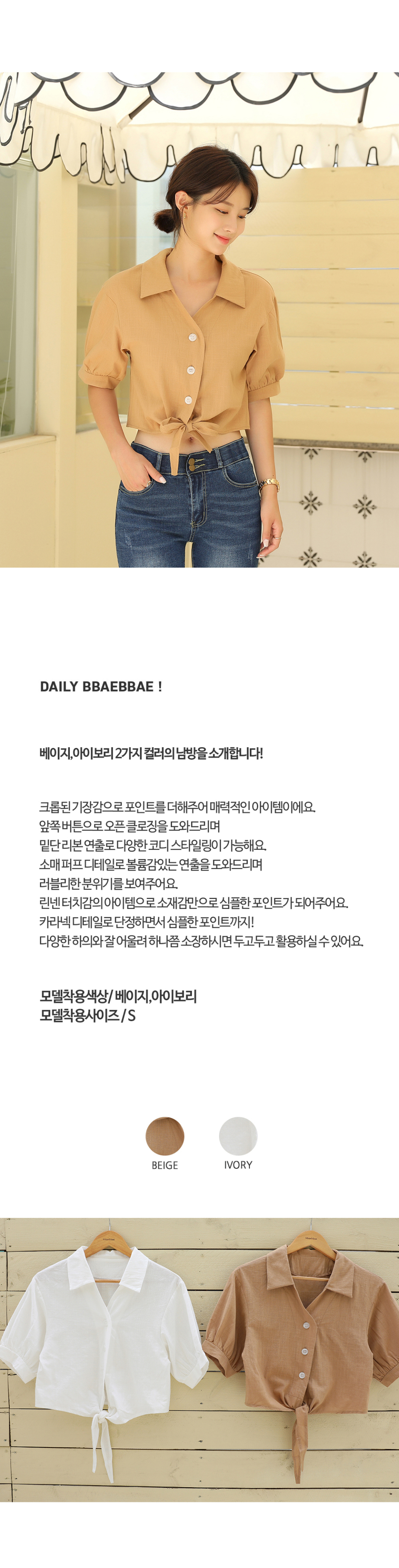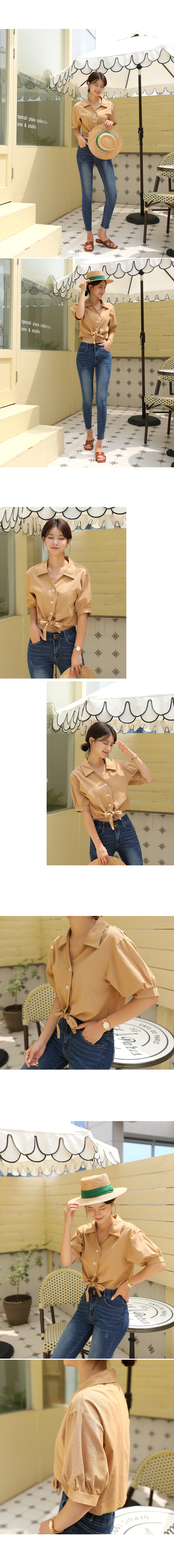 러블리퍼프 크롭 리본 반팔 블라우스